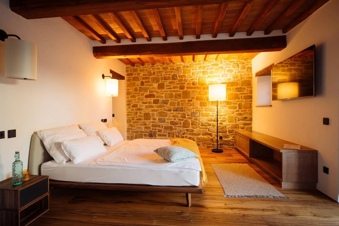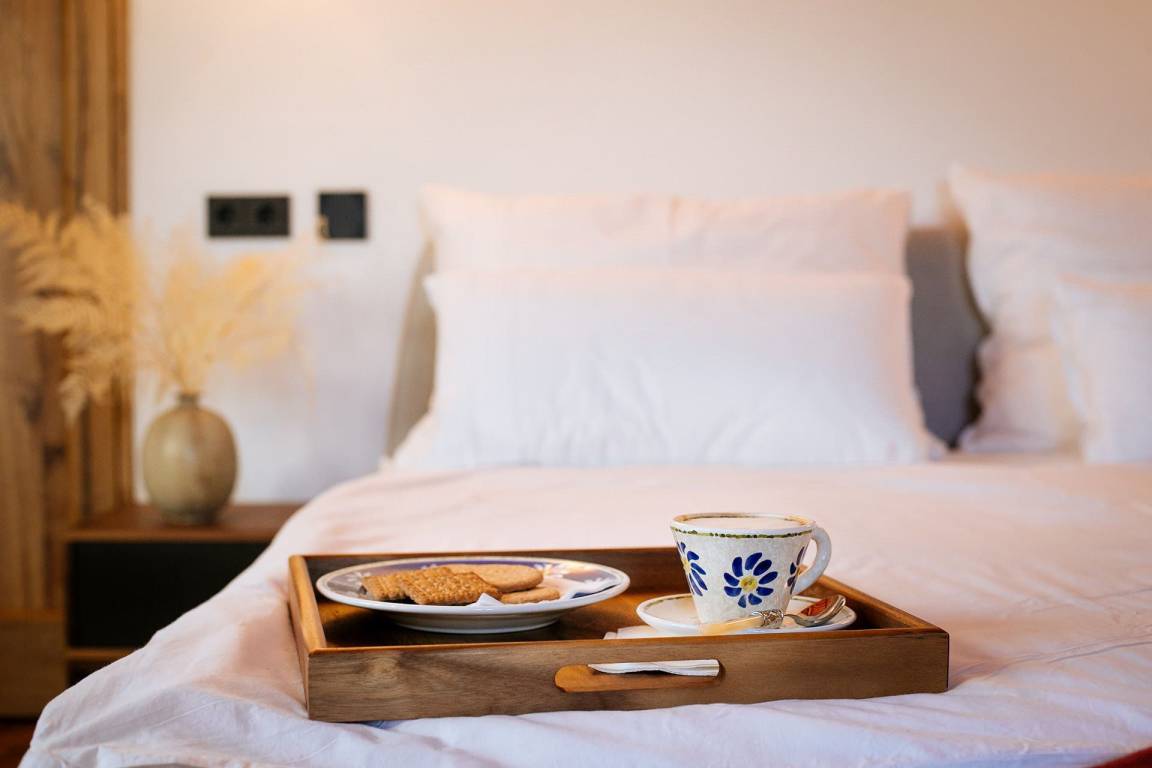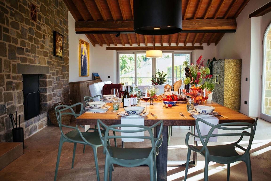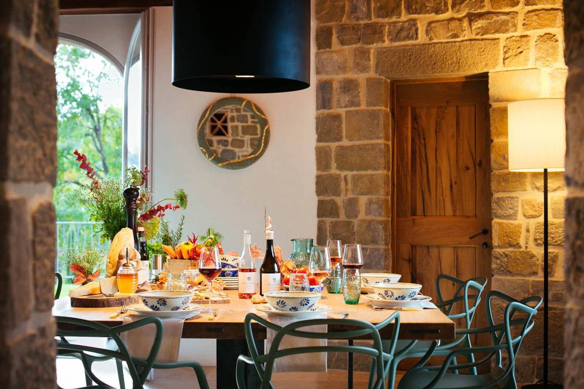 Der Mietpreis beinhaltet ein Frühstücksbuffet im Innen- oder Außenbereich, einen täglichen Reinigungsservice von 5 Stunden, einen täglichen Wechsel der Badetücher, Brennholz und ein von einem Chef mit Assistent zubereitetes Familienessen mit 2 leichten Gängen und einer Flasche Wein. Eine Weinverkostung mit den eigenen Produktionen des Eigentümers ist ebenfalls enthalten.