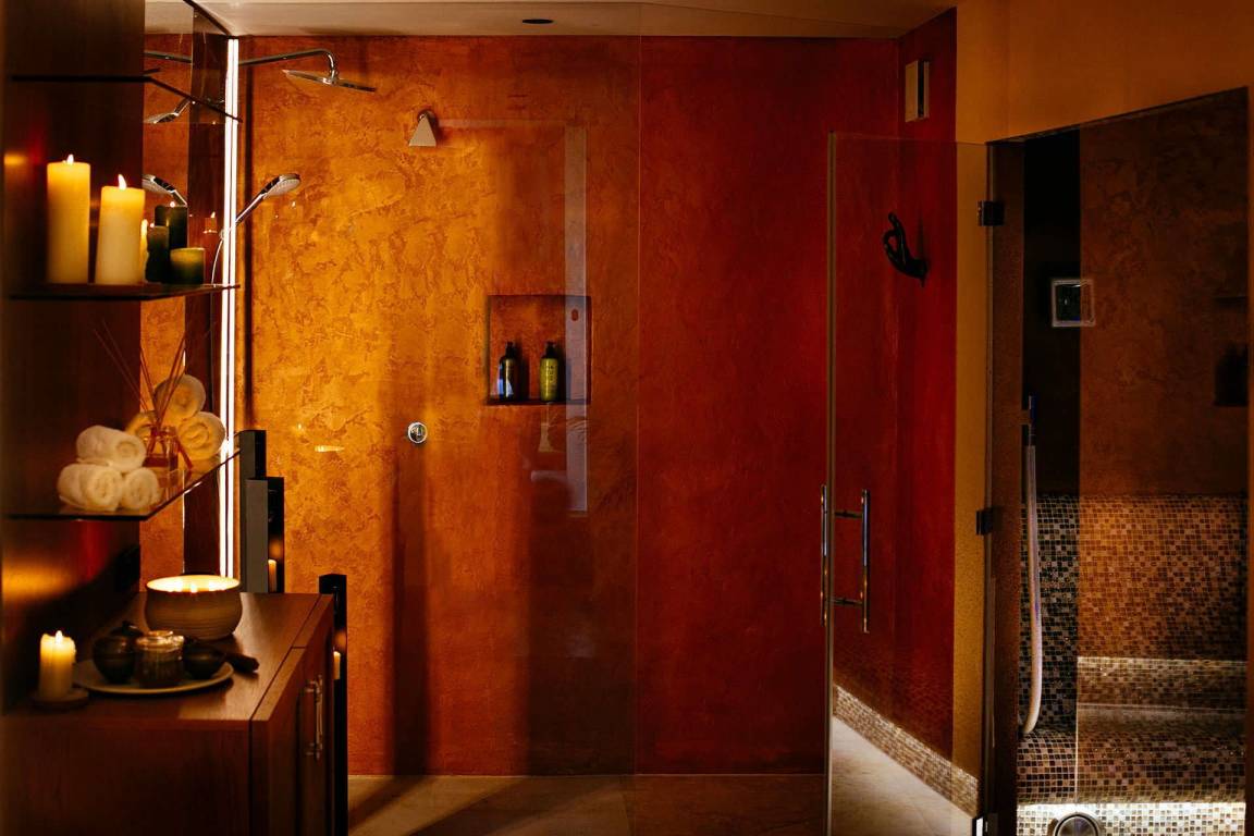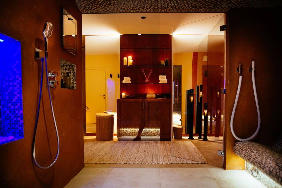 Das untere Geschoss beherbergt zwei weitere Schlafzimmer, jedes mit eigenem Duschbad, Kleiderschrank und Fernsehen. Alle Doppelbetten in der Villa können nicht in zwei Einzelbetten umgewandelt werden. Auf dieser Ebene befinden sich zudem ein vollständig ausgestattetes Fitnessstudio mit Gewichten, stationärem Fahrrad und Yogaausrüstung sowie ein Wellnesscenter mit Sauna, türkischem Bad und eigenem Bad mit Dusche.