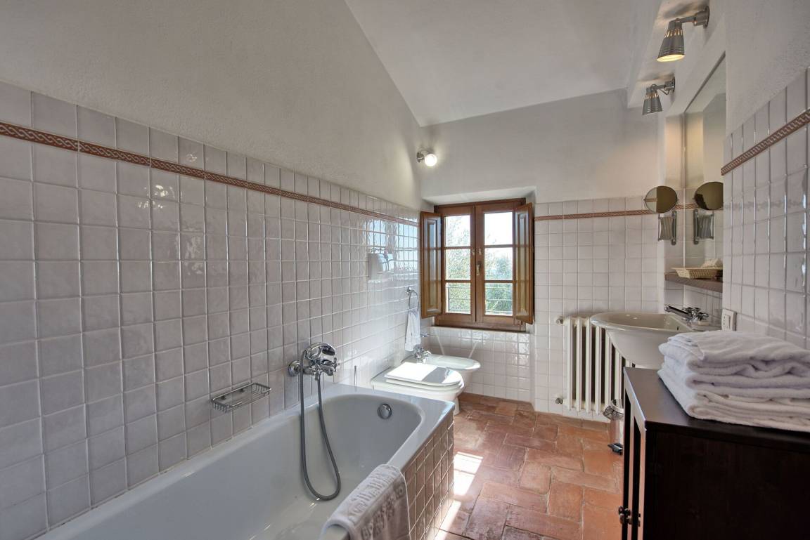 „Eine richtig hübsche und gut möblierte, geräumige Wohnung mit zwei Bädern in einer ursprünglichen toskanischen Gebäudestruktur! Die Lage ist sehr ruhig, zwischen Rebbergen und Olivenhainen und Wäldern, mit schöner Aussicht über die Hügel und ganz knapp, aber doch sichtbar, die Silhouette der Kulturstadt Siena. In der Anlage bloss 6 Wohnungen, dafür ein (in einem Teil leider etwas wenig tiefes) Schwimmbad von sympathischer Grösse von 5x15m. Ev sind die Wohnungen etwas ringhörig, gegeneinander nicht besonders gut lärmgeschützt. Da zur Zeit unseres Aufenthaltes bloss 3 der 6 Wohnungen besetzt waren und die Anwesenden alle rücksichtsvoll waren, gab es für uns jedoch keine Geräuschprobleme. Die Küchenausrüstung/Geschirr ist eher knapp, aber es ist so machbar, auch wenn man (wie wir) gerne selber kocht und die Küche wirklich benutzt. Vor Ort gibt es jedoch keine zusätzlichen Services, auch keine vor Ort sich aufhaltende Betreuungsperson; diese wäre jedoch problemlos übers Handy erreichbar und sowohl freundlich wie verfügbar. Wir haben uns wohlgefühlt, es hat uns richtig gut gefallen und wir können es ohne Vorbehalte empfehlen.“