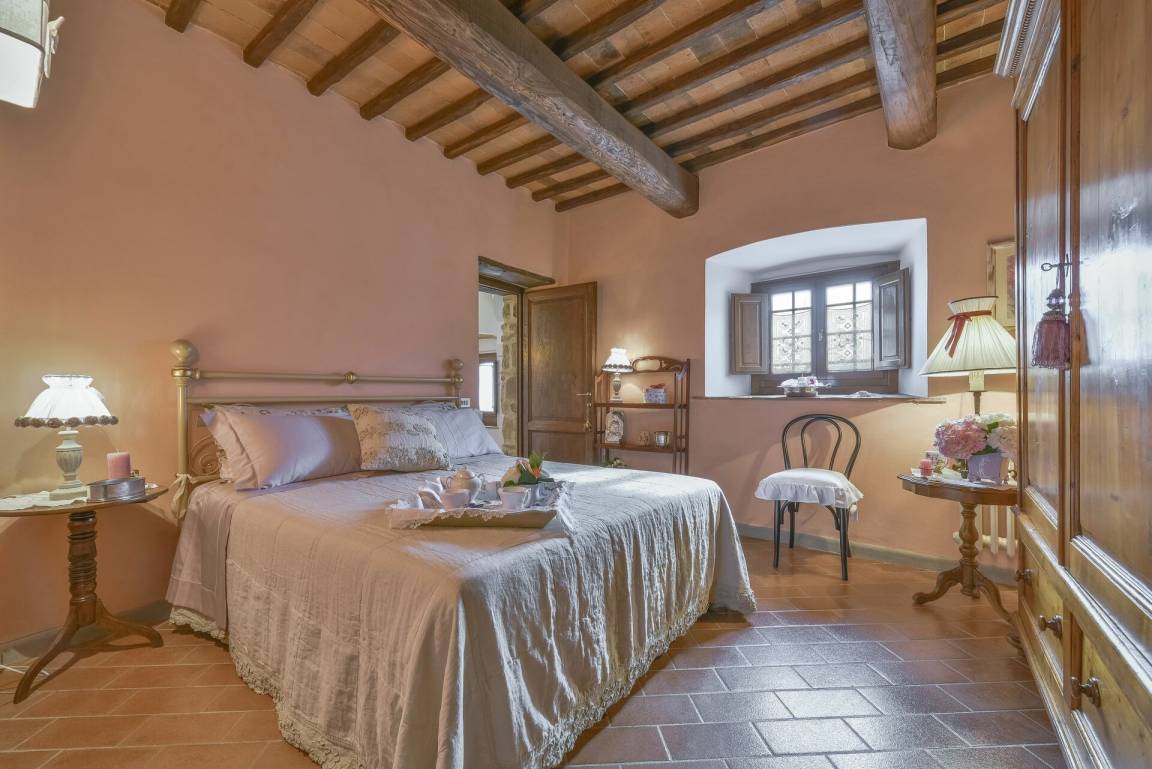 Schlafzimmer mit Bad 1: Doppelbett, Waschbecken, WC, Bidet, Badewanne, Dusche.