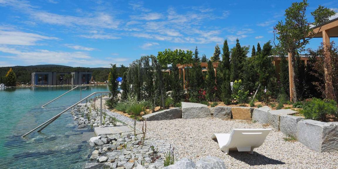 Unsere Villas bieten ein Schlafzimmer, 1 Badezimmer, eine Küchenzeile sowie einen Ess- und Wohnbereich mit Ausziehcouch auf 40-60m² Wohnbereich. Außerdem steht Ihnen ein 300m² großer privater Themengarten mit einer Terrasse direkt am Gartensee mit privatem Gartenseezugang zur Verfügung. Zusätzlich können Sie in Ihrer privaten Sauna oder heißen Badewanne unter freiem Sternenhimmel entspannen.