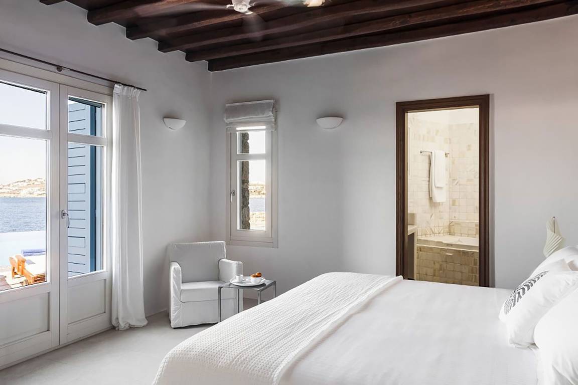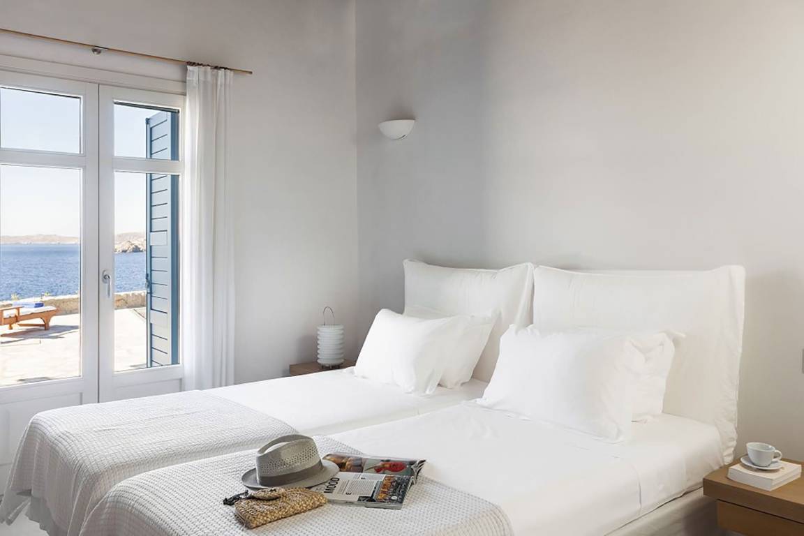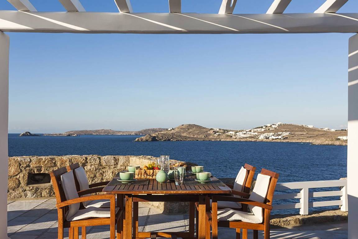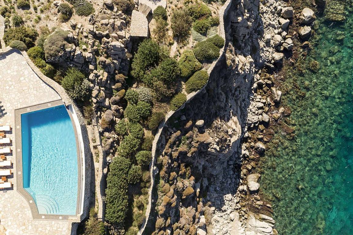 Die Villa verfügt über einen Infinity-Pool mit Panoramablick auf die benachbarten Inseln und die Ägäis.