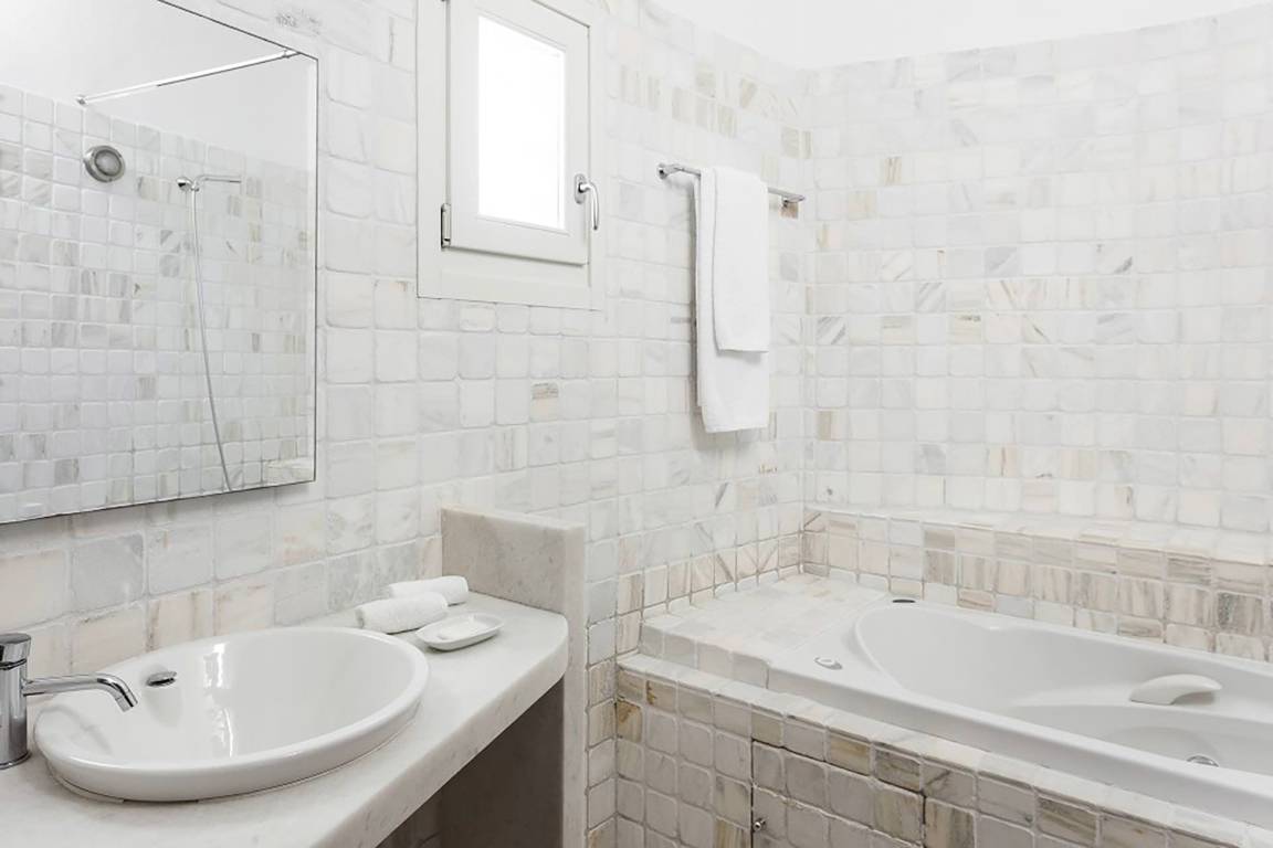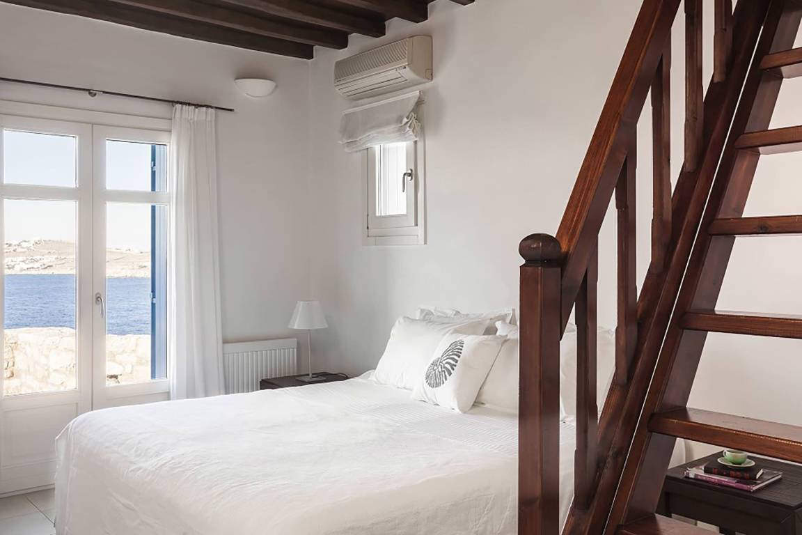 Die Villa Efkalia bietet Platz für bis zu 11 Gäste und verfügt über 6 Schlafzimmer sowie 5 Bäder. Die Räume verteilen sich über mehrere Geschosse und verbinden Wohnbereiche mit Schlafzimmern. Die 6 Schlafzimmer sind mit unterschiedlichen Schlafanordnungen ausgestattet und richten sich nach verschiedenen Gästebedürfnissen. Alle 5 Bäder ermöglichen hohe Privatsphäre und Komfort während des Aufenthalts. Das Interieur ist offen gestaltet und lässt natürliches Licht in alle Räume eindringen.