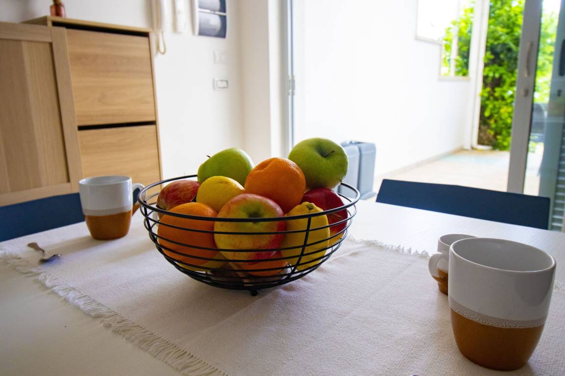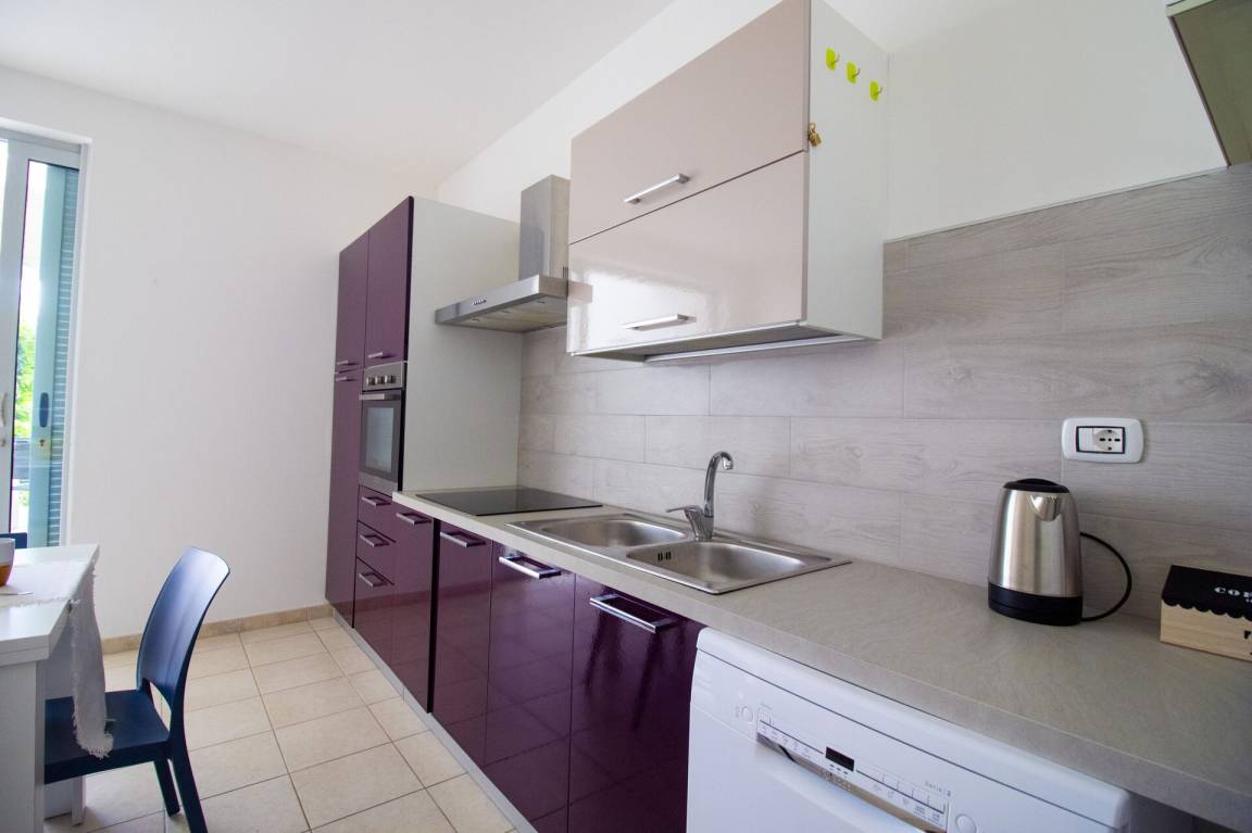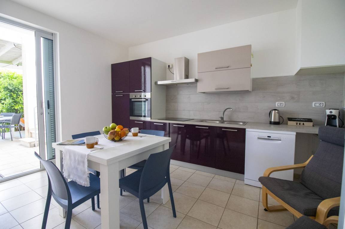 Wohnküche: gut ausgestattete Küche, Esstisch (Personen: 6), Kühlschrank, Tiefkühler, Herd, Ofen, Italienische Kaffeemaschine, Sofa, WiFi Internet, Klimaanlage, TV, Ausgang auf den Garten.