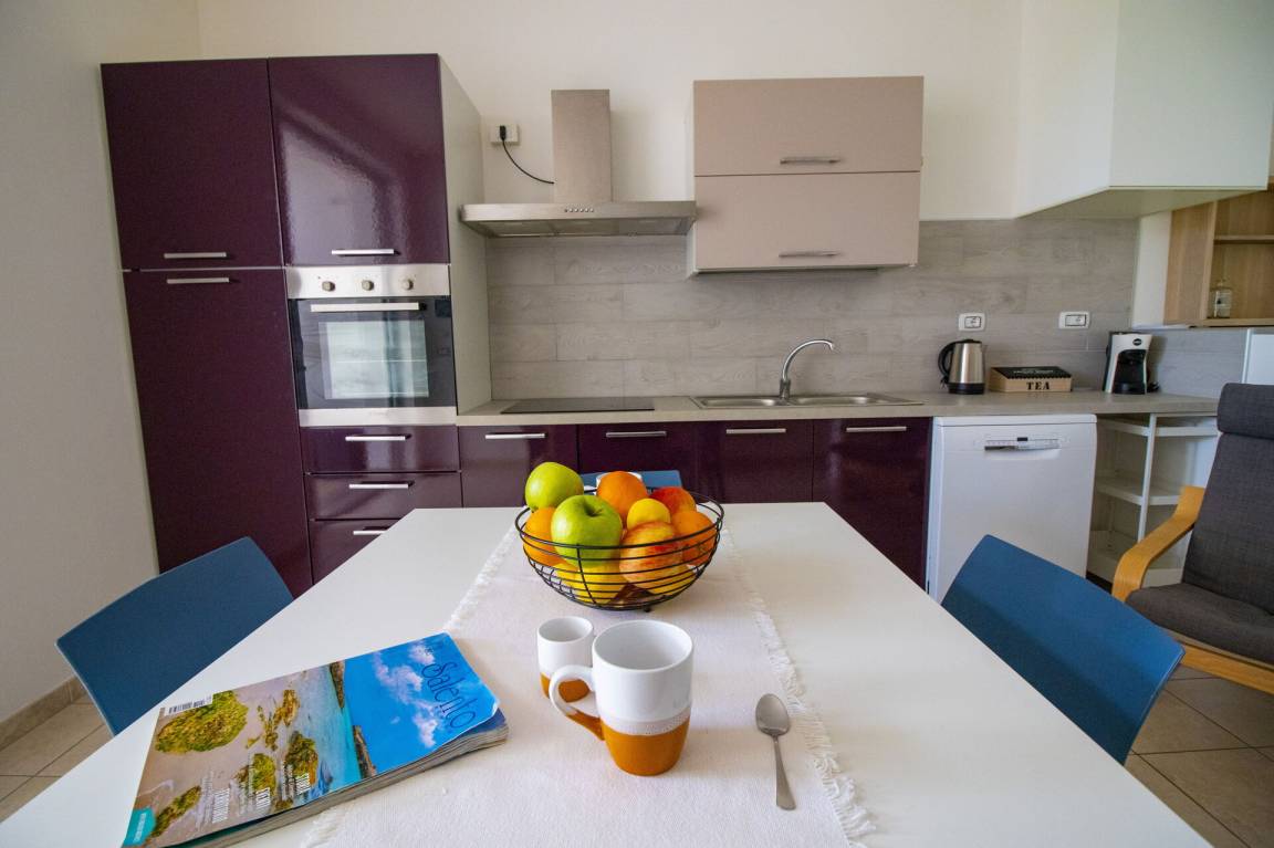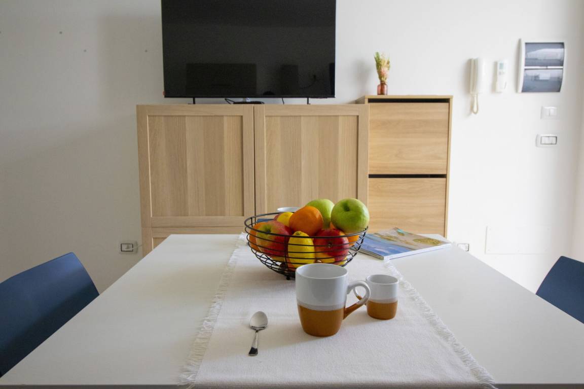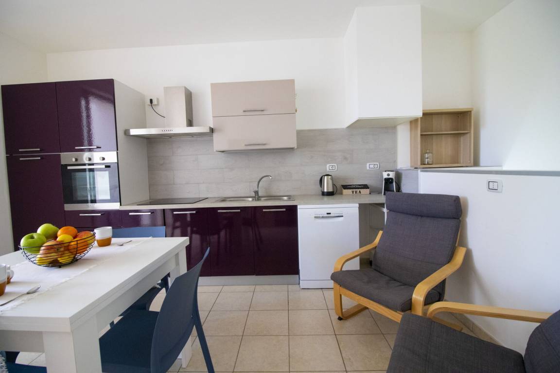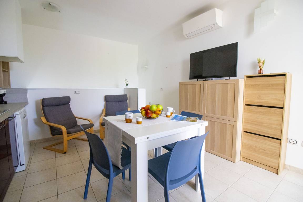 Wohnküche: gut ausgestattete Küche, Esstisch (Personen: 6), Kühlschrank, Tiefkühler, Herd, Ofen, Italienische Kaffeemaschine, Sofa, WiFi Internet, Klimaanlage, TV, Ausgang auf den Garten.