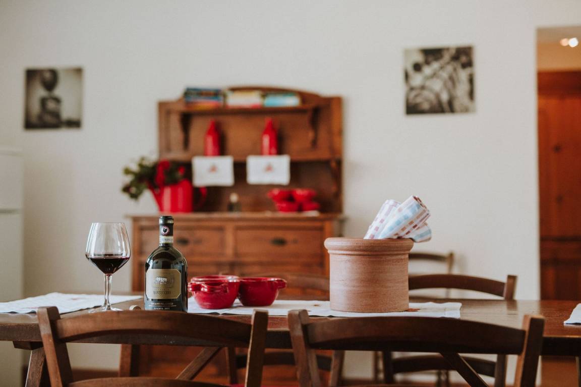 L'Azalea ist eine Wohnung im Agriturismo La Papessa in San Donato für sechs Personen mit separatem Eingang im Erdgeschoss, bestehend aus einer großen Küche, einem Wohnzimmer mit Doppelschlafcouch, einem Schlafzimmer mit Doppelbett, ein Schlafzimmer mit zwei Einzelbetten und ein Badezimmer mit Dusche.