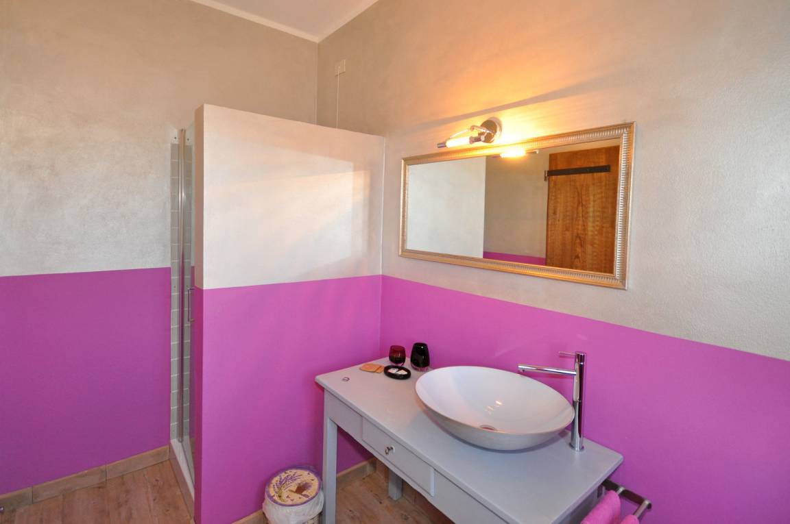 Erdgeschoss Doppelzimmer mit Ehebett und privatem Bad mit Dusche (ohne Fenster). Dieses Zimmer ist nur von außen erreichbar. Waschküche mit Waschmaschine, Bügelbrett und Bügeleisen.