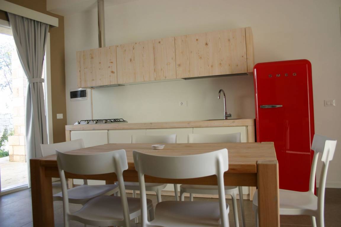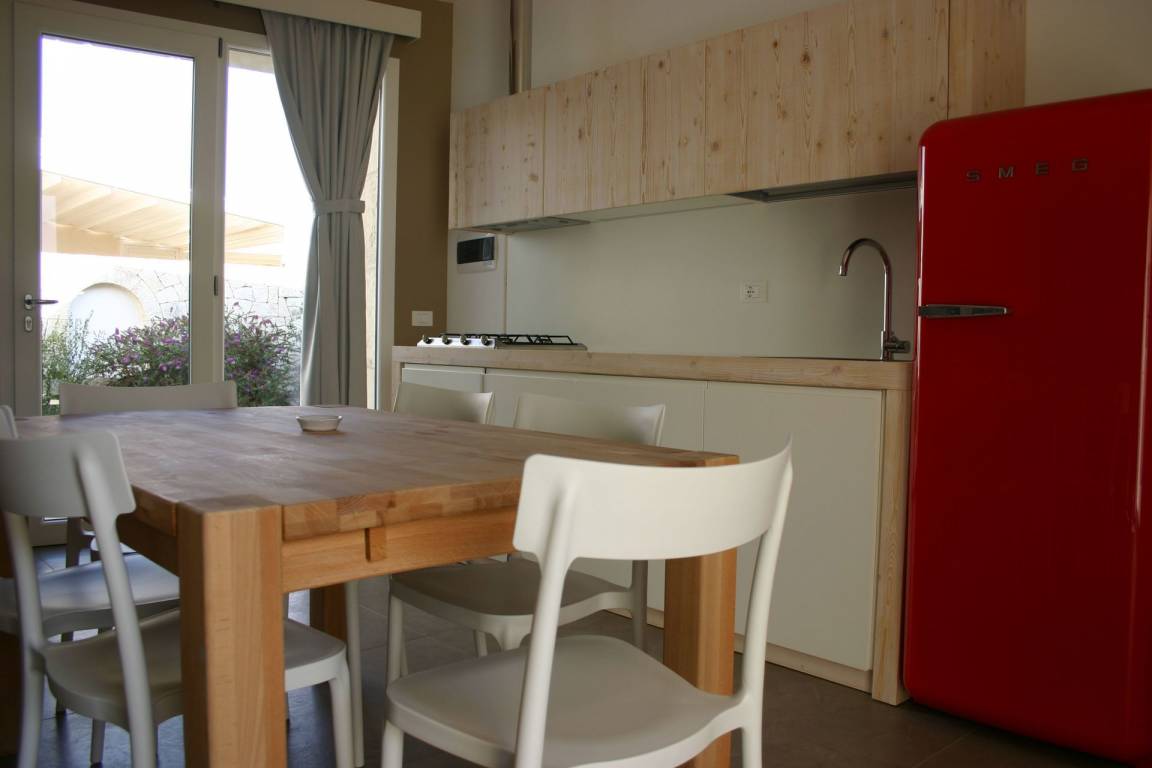 Wohnküche (20 m²): gut ausgestattete Küche, Esstisch, Spülmaschine, Kühlschrank, Tiefkühler, Herd, Bügeleisen, Italienische Kaffeemaschine, Waschmaschine, Doppel-Schlafsofa, WiFi Internet, Klimaanlage, Fliegengitter, TV, Video / DVD, Ausgang auf den Patio.