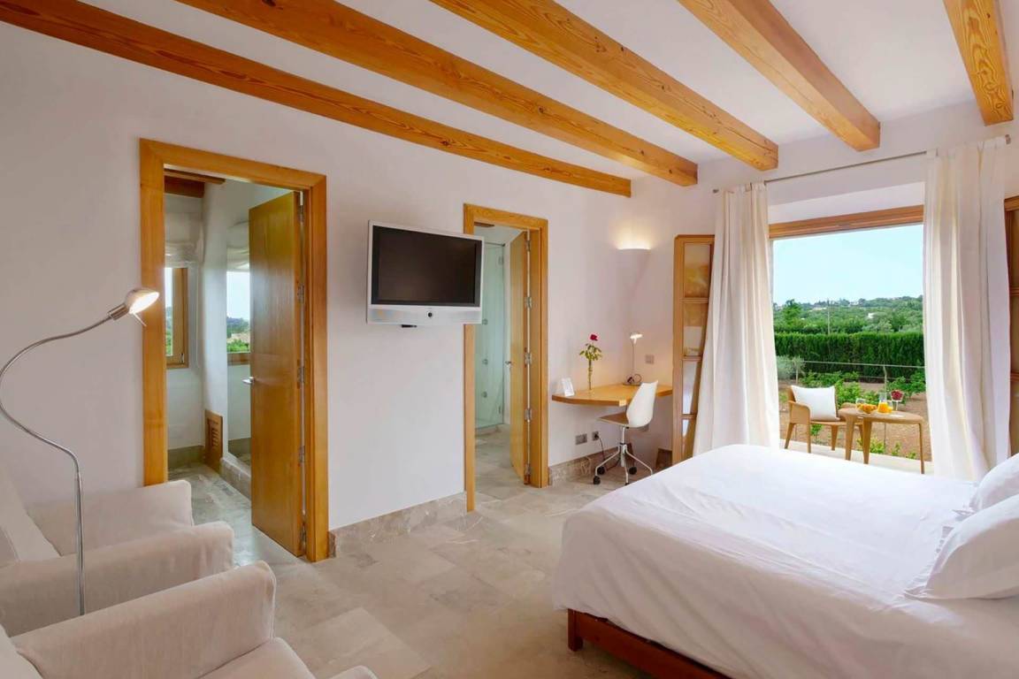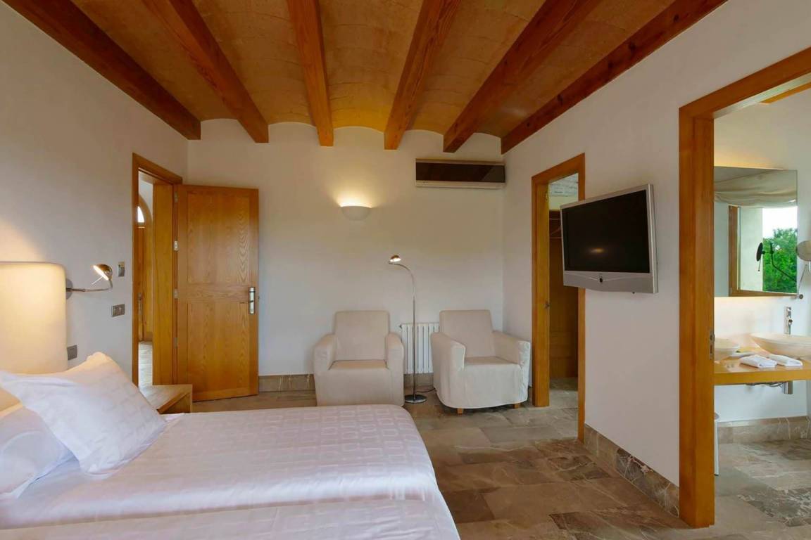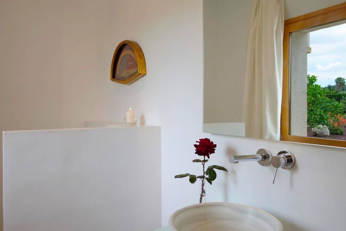 Die Villa verteilt sich über Erdgeschoss und erstes Obergeschoss und bietet Platz für bis zu 8 Gäste in 4 Schlafzimmern und 4 Bädern. Das Erdgeschoss empfängt die Gäste über eine überdachte Terrasse mit Sitzbereich und Tisch mit Stühlen, die in ein helles Wohnzimmer mit Sofas und dekorativem Kamin führt. Das Wohnzimmer ist offen mit dem Esszimmer verbunden. Die Küche ist in einem separaten Raum untergebracht. Die 4 Schlafzimmer bestehen aus 3 Junior Suiten und einer Bridal Suite mit 70 Quadratmetern. Jedes Schlafzimmer verfügt über ein Doppelbett mit 180 cm Breite, eine private Terrasse mit Sesseln mit Blick auf den Poolbereich und den Garten, ein Ankleidezimmer, eine Minibar, eine Klimaanlage und einen Safe. Jedes en-suite Bad ist mit einer Whirlpool-Badewanne und einer Hydromassage-Dusche ausgestattet.