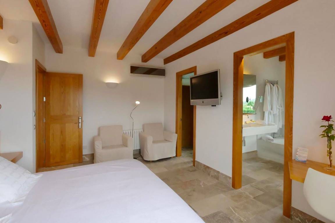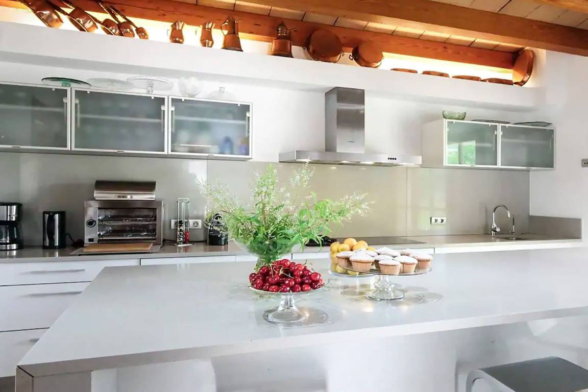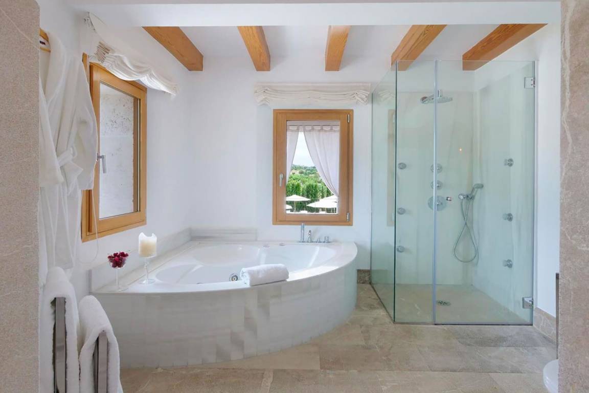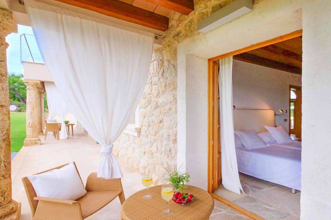 Die Villa verteilt sich über Erdgeschoss und erstes Obergeschoss und bietet Platz für bis zu 8 Gäste in 4 Schlafzimmern und 4 Bädern. Das Erdgeschoss empfängt die Gäste über eine überdachte Terrasse mit Sitzbereich und Tisch mit Stühlen, die in ein helles Wohnzimmer mit Sofas und dekorativem Kamin führt. Das Wohnzimmer ist offen mit dem Esszimmer verbunden. Die Küche ist in einem separaten Raum untergebracht. Die 4 Schlafzimmer bestehen aus 3 Junior Suiten und einer Bridal Suite mit 70 Quadratmetern. Jedes Schlafzimmer verfügt über ein Doppelbett mit 180 cm Breite, eine private Terrasse mit Sesseln mit Blick auf den Poolbereich und den Garten, ein Ankleidezimmer, eine Minibar, eine Klimaanlage und einen Safe. Jedes en-suite Bad ist mit einer Whirlpool-Badewanne und einer Hydromassage-Dusche ausgestattet.