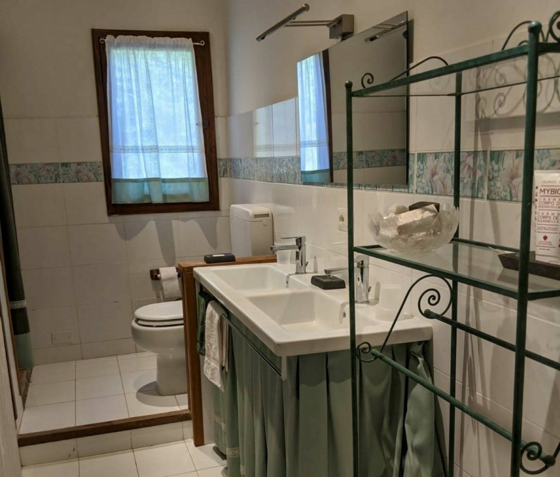 Badezimmer: Waschbecken, WC, Bidet, Dusche, WiFi Internet.