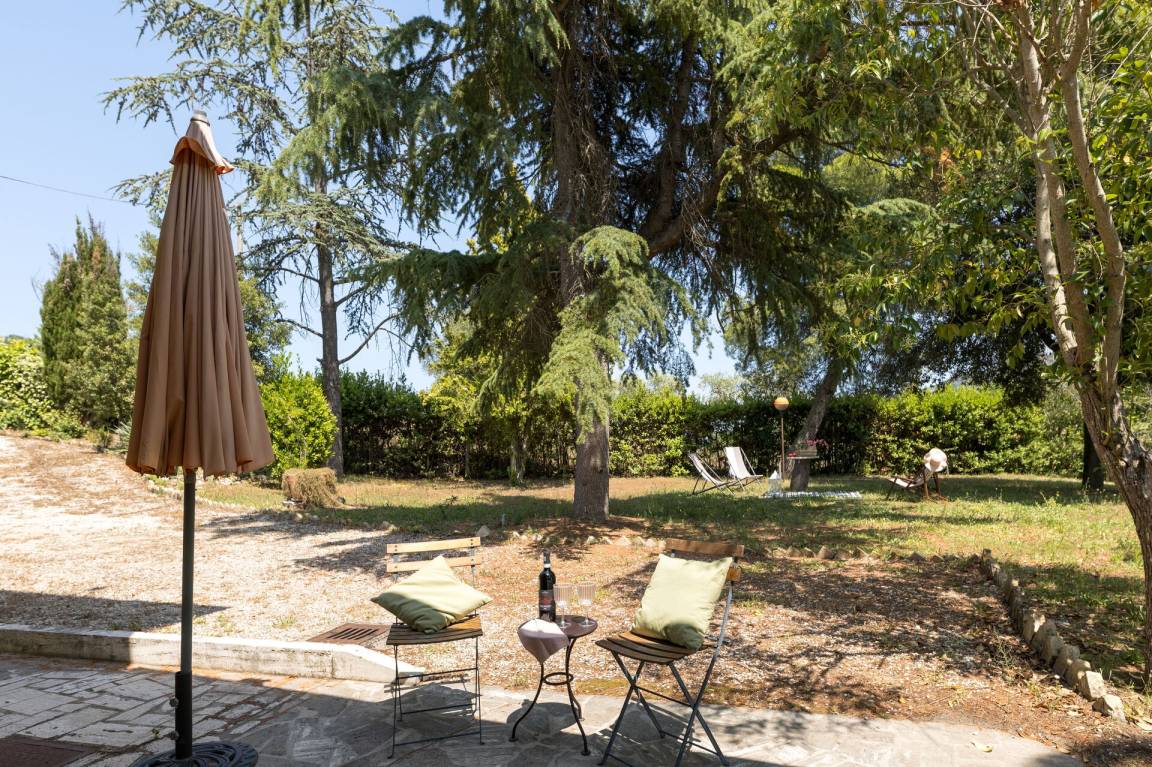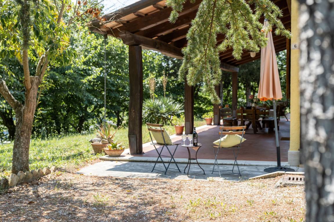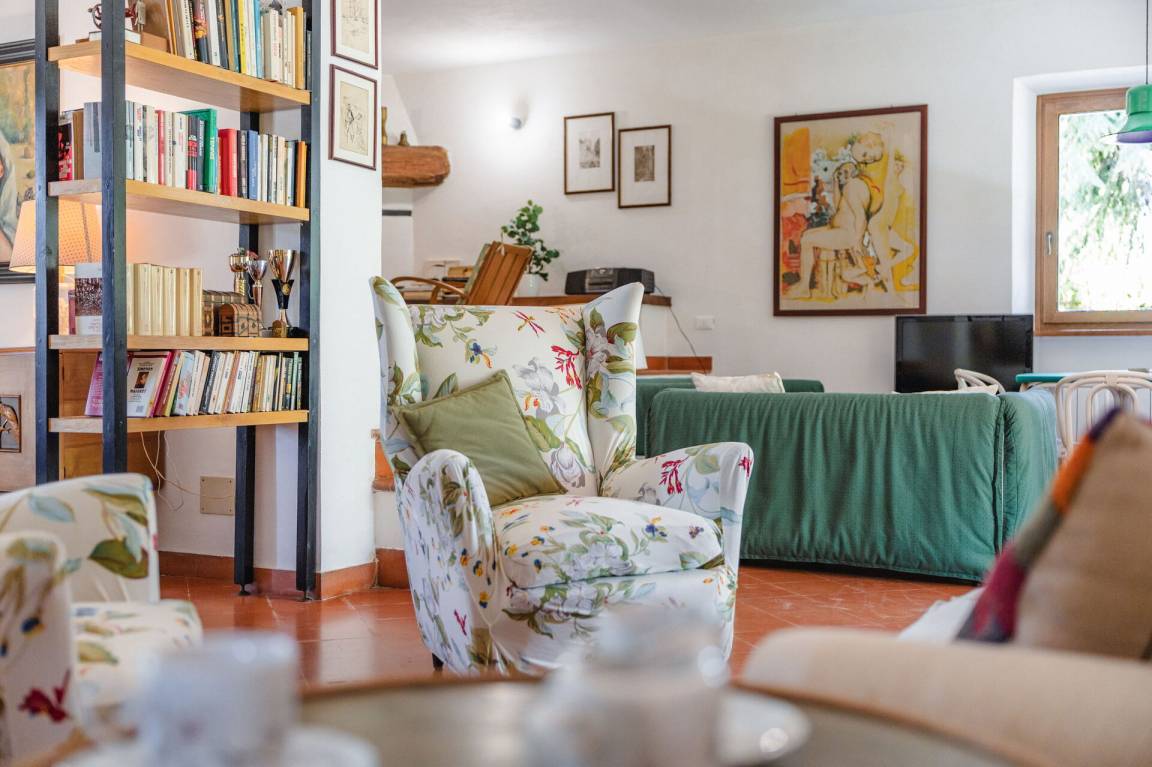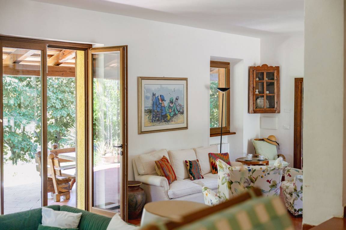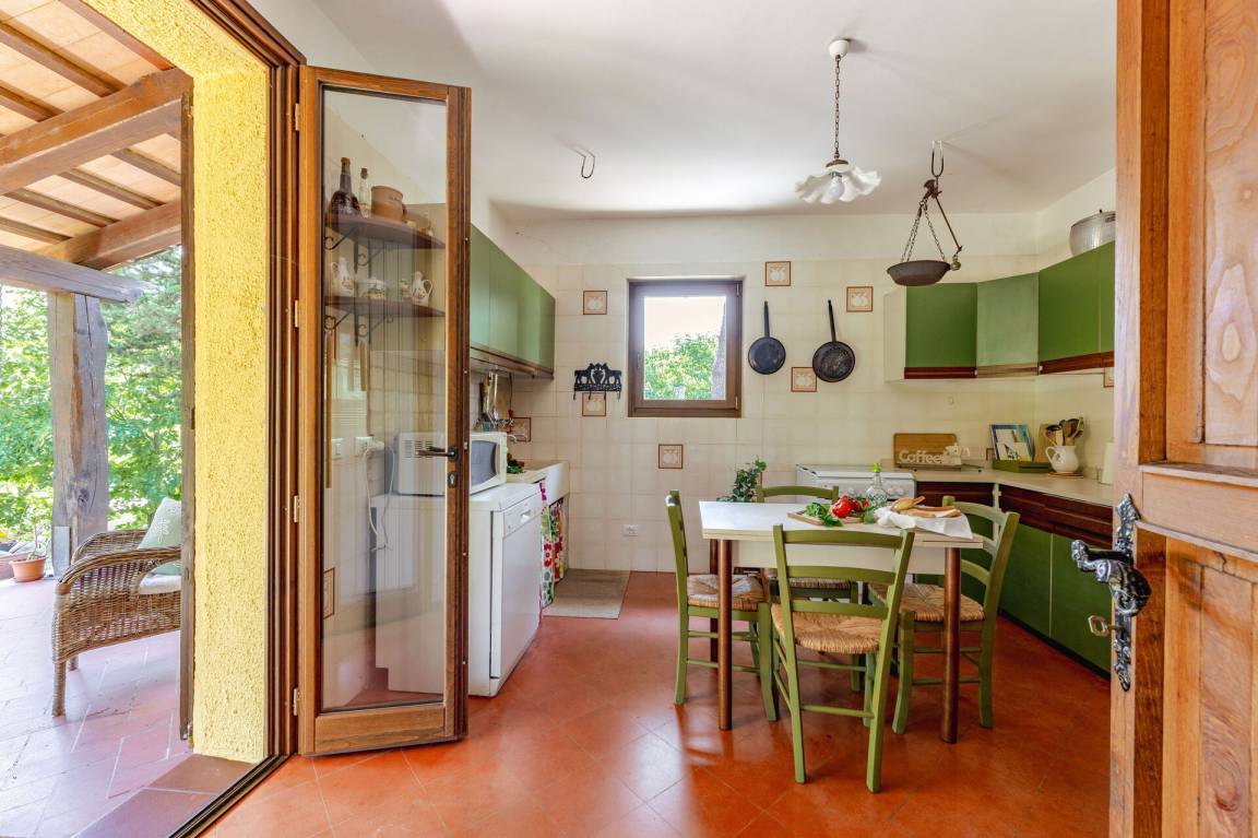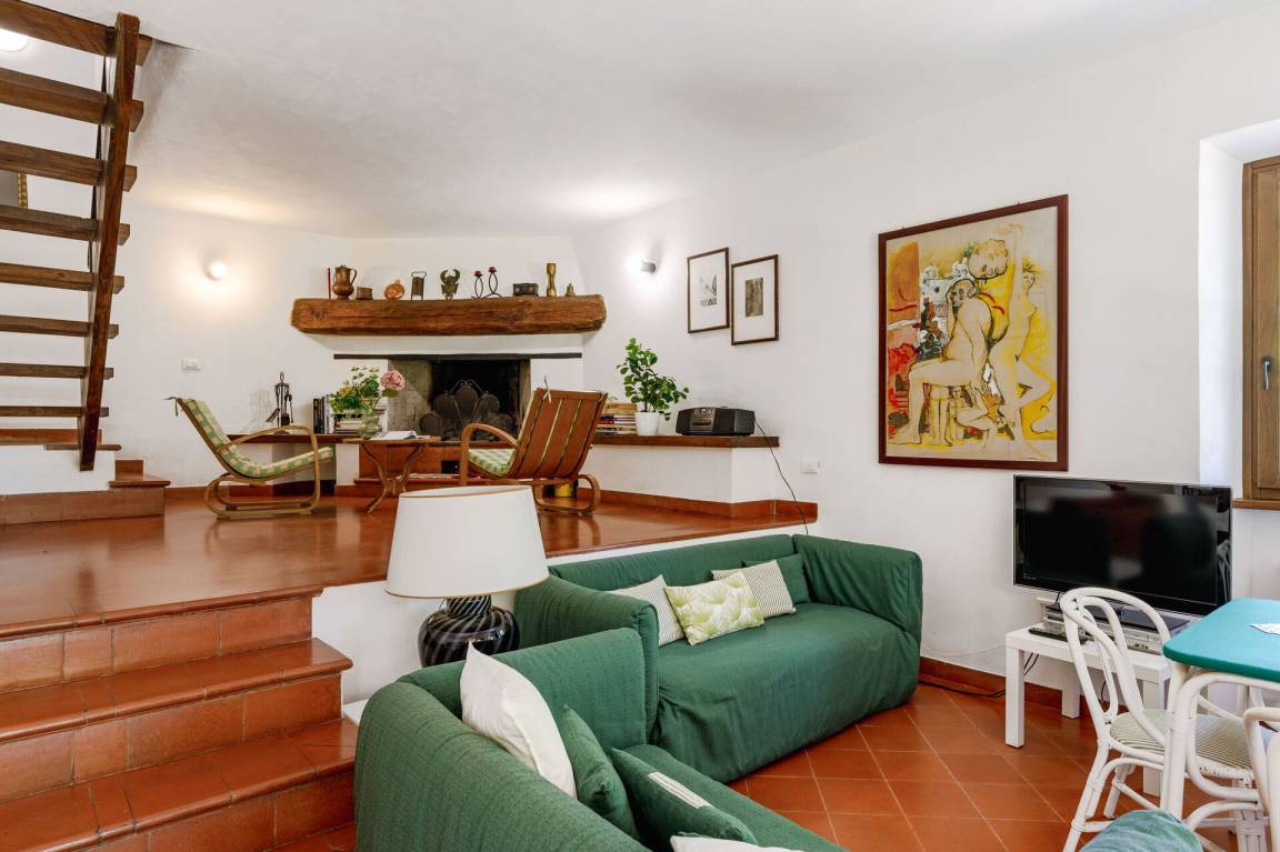 Wohnküche: gut ausgestattete Küche, Esstisch, Spülmaschine, Kühlschrank, Tiefkühler, Mikrowelle, Herd, Ofen, Italienische Kaffeemaschine, Waschmaschine, Sofa, Sessel, Kamin, WiFi Internet, Satelliten-TV, Rauchmelder, Ausgang auf den Garten, Ausgang auf den Patio.