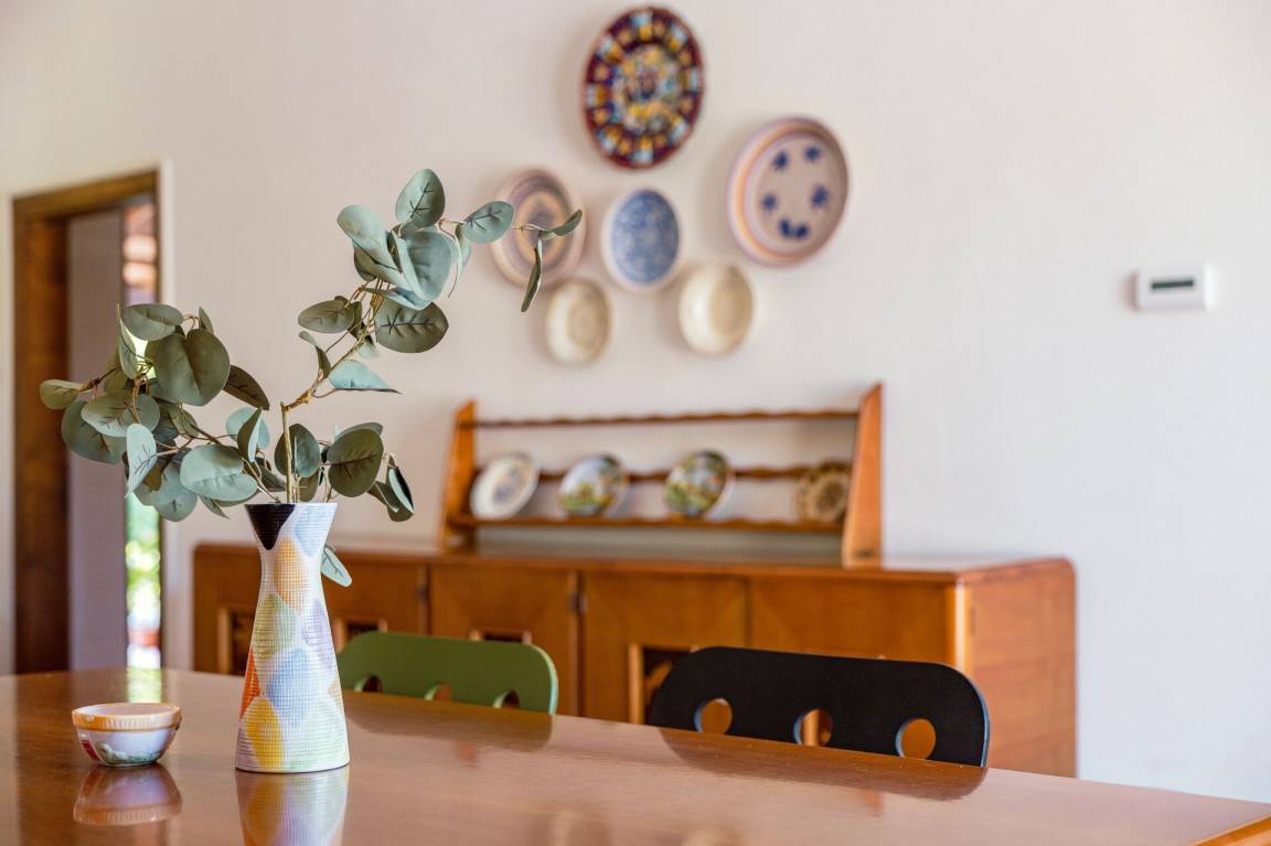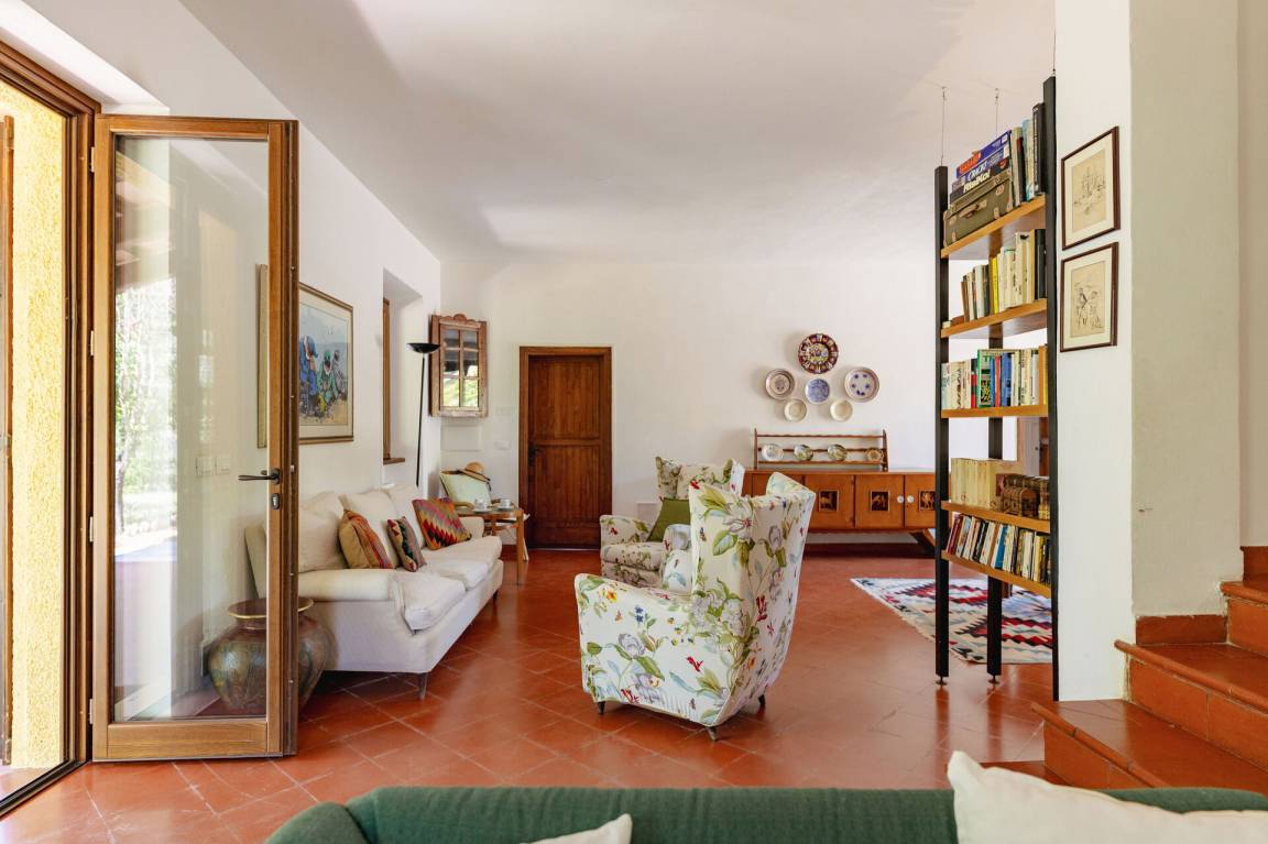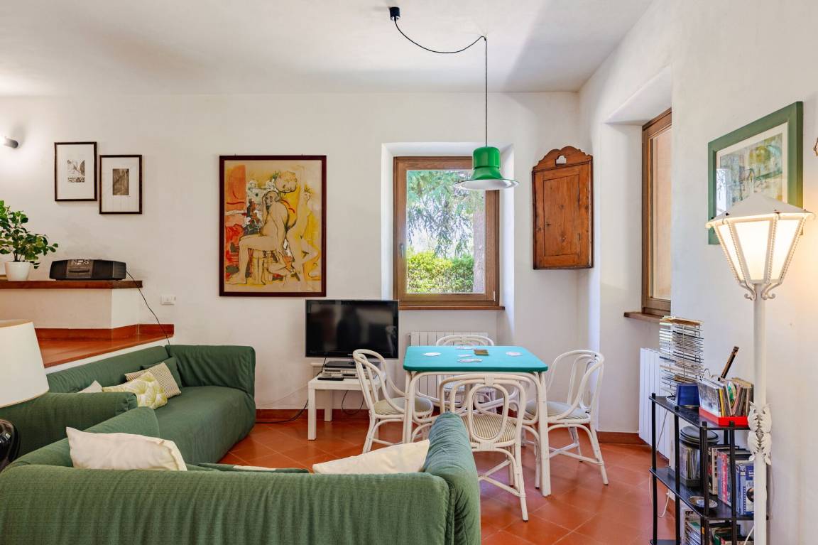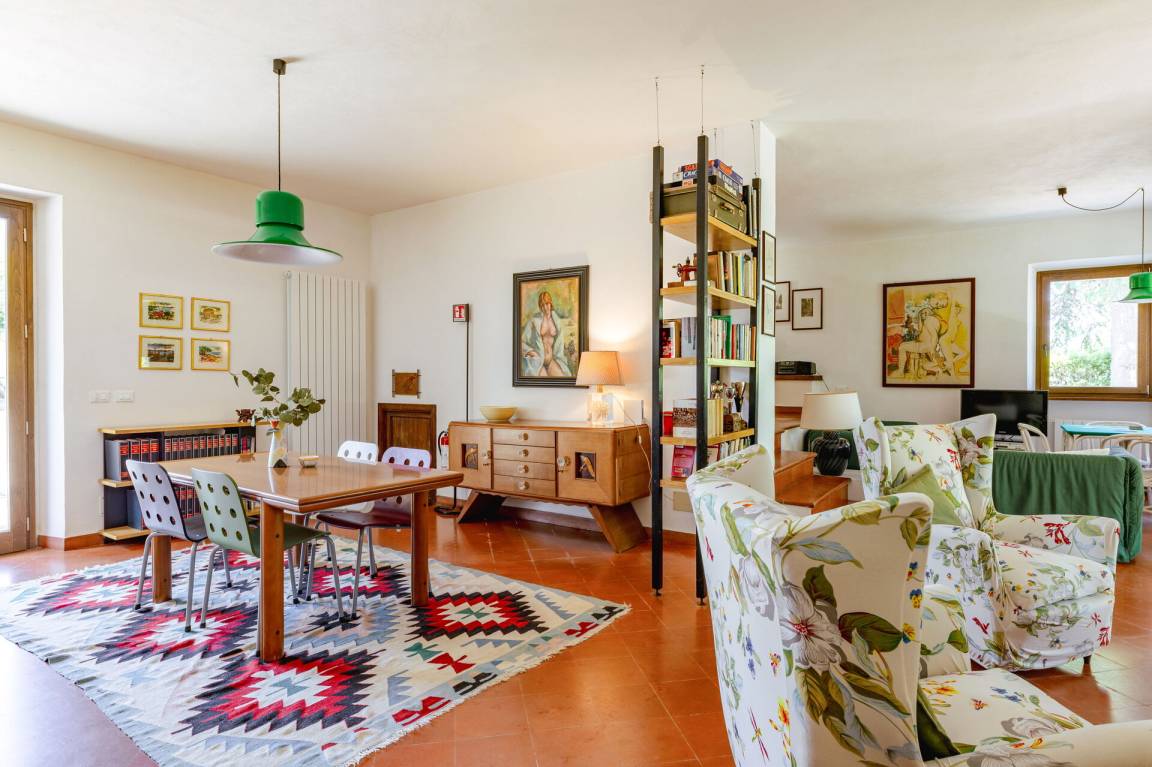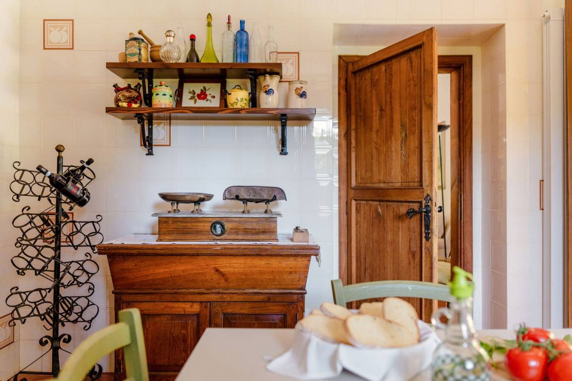Wohnküche: gut ausgestattete Küche, Esstisch, Spülmaschine, Kühlschrank, Tiefkühler, Mikrowelle, Herd, Ofen, Italienische Kaffeemaschine, Waschmaschine, Sofa, Sessel, Kamin, WiFi Internet, Satelliten-TV, Rauchmelder, Ausgang auf den Garten, Ausgang auf den Patio.