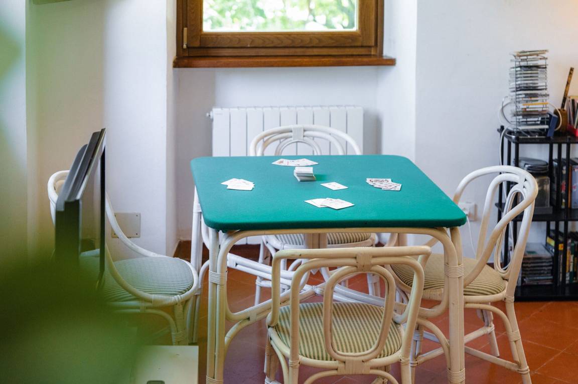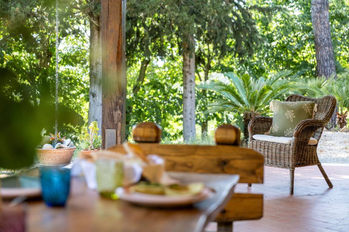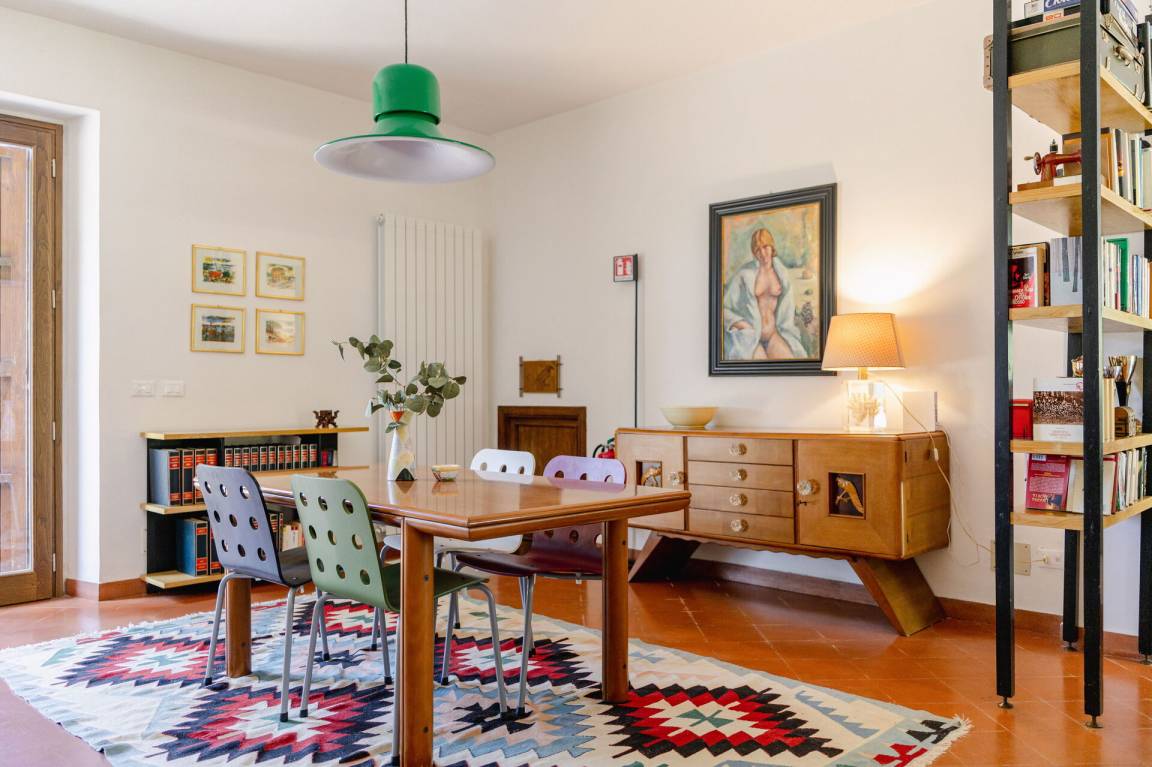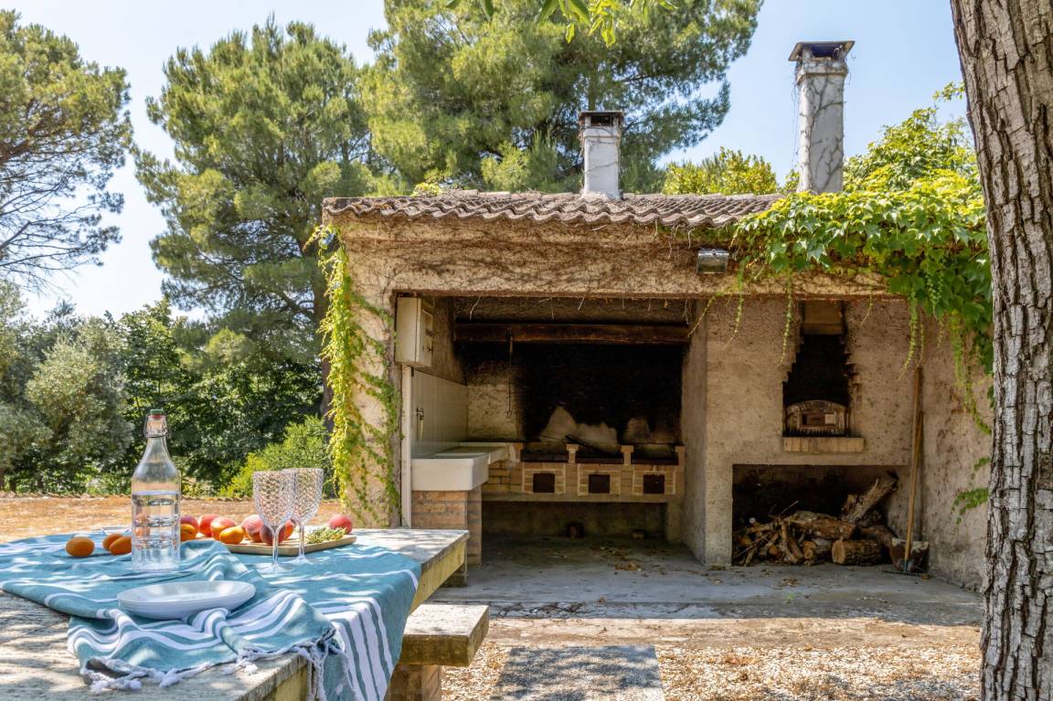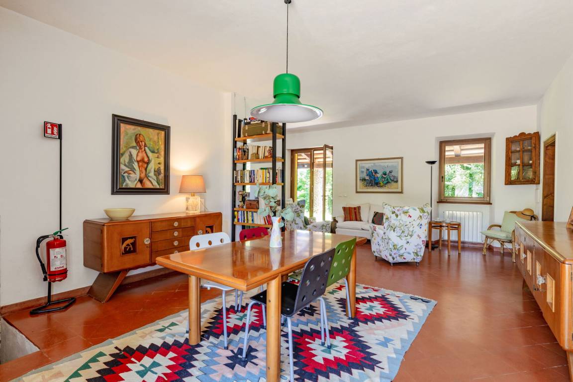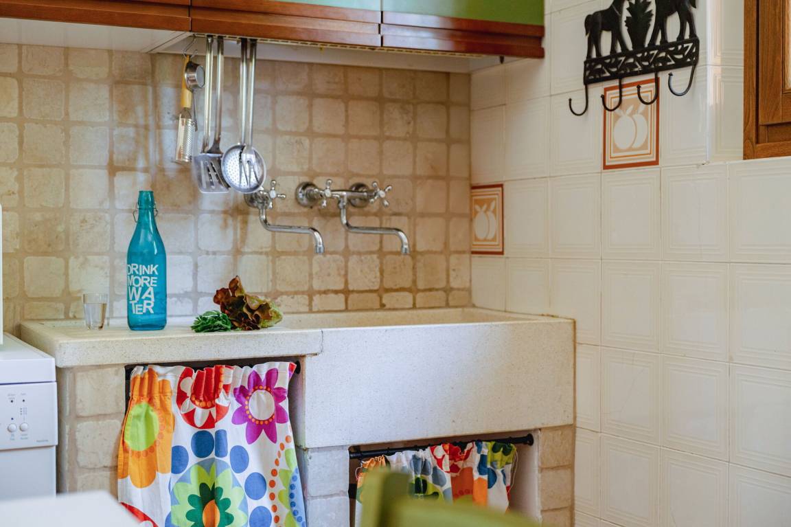 Wohnküche: gut ausgestattete Küche, Esstisch, Spülmaschine, Kühlschrank, Tiefkühler, Mikrowelle, Herd, Ofen, Italienische Kaffeemaschine, Waschmaschine, Sofa, Sessel, Kamin, WiFi Internet, Satelliten-TV, Rauchmelder, Ausgang auf den Garten, Ausgang auf den Patio.