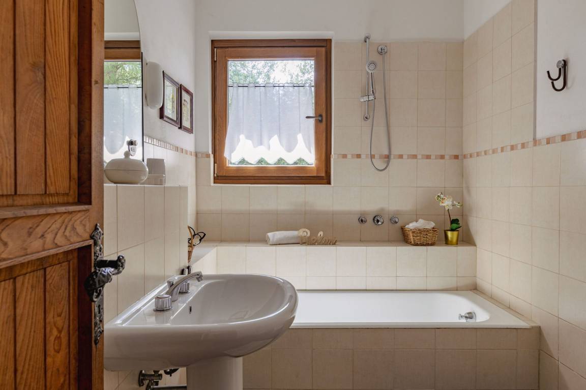 Badezimmer: Waschbecken, WC, Bidet, Badewanne, Fön, WiFi Internet.