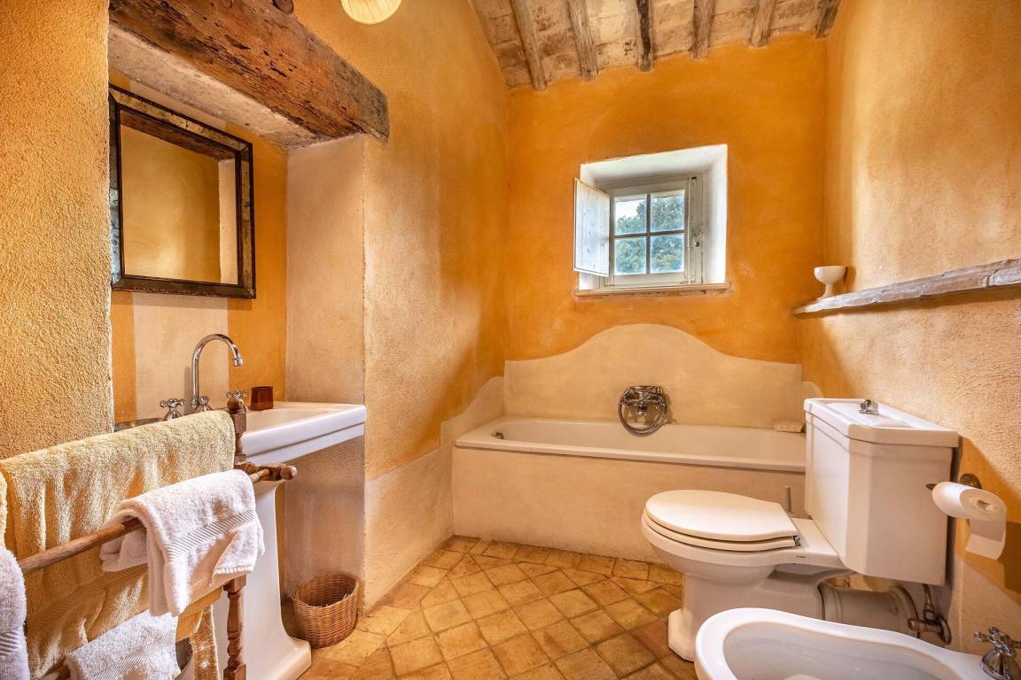 Schlafzimmer mit Bad 2: Doppelbett, WiFi Internet, Klimaanlage, Waschbecken, WC, Bidet, Badewanne.