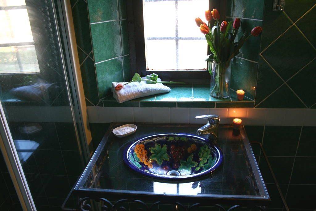 Schlafzimmer mit Bad 1: Doppelbett, WiFi Internet, Waschbecken, WC, Bidet, Dusche.