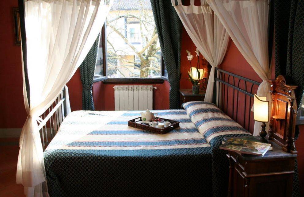 Schlafzimmer mit Bad: Doppelbett, WiFi Internet, Waschbecken, WC, Bidet, Dusche.