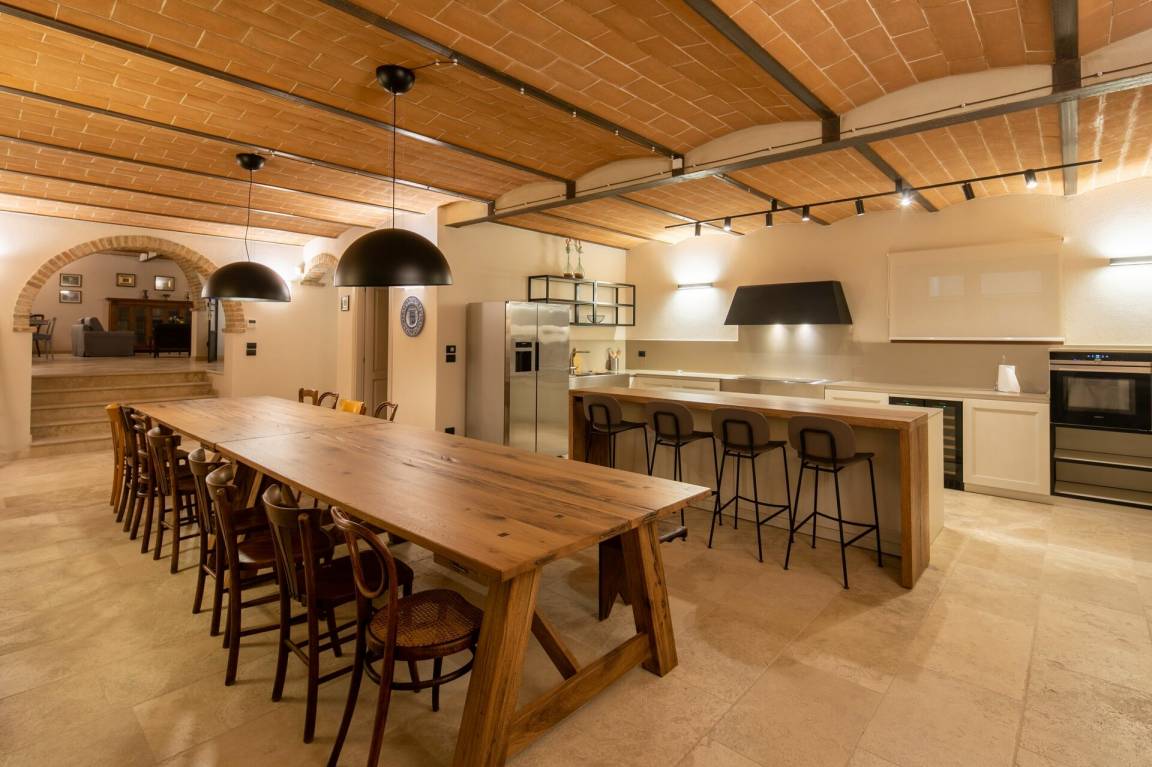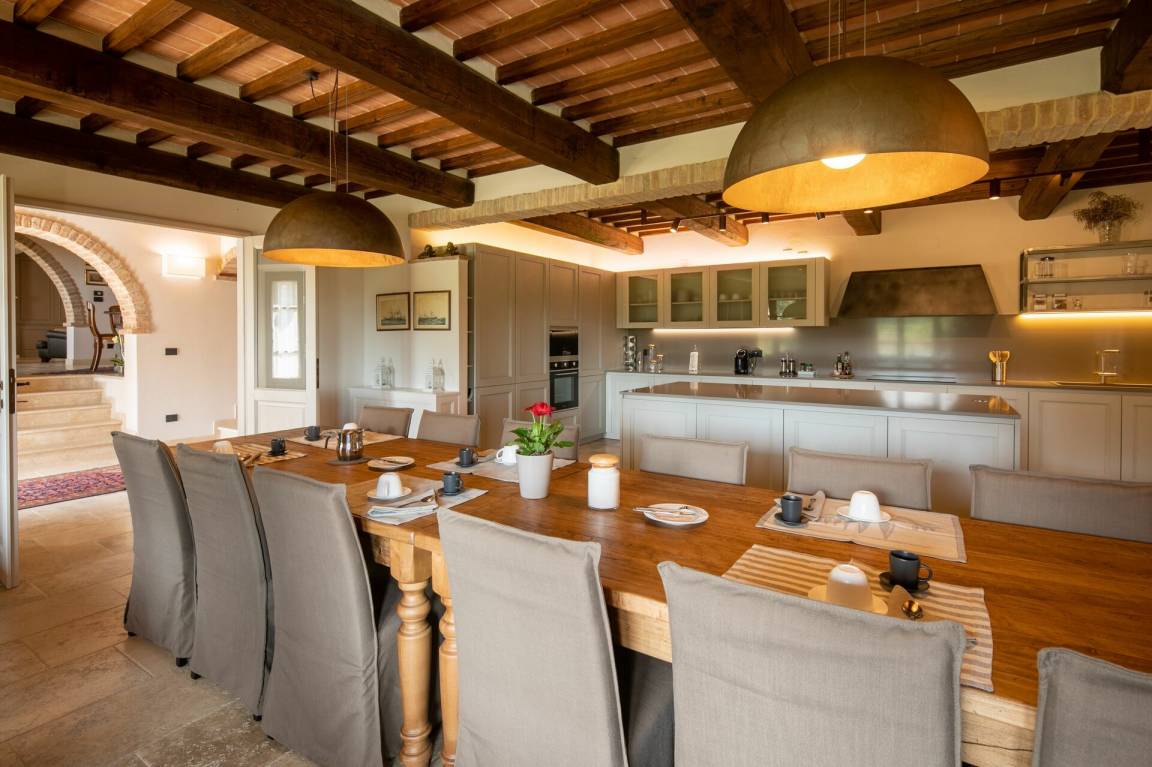 offener Raum: Esstisch (Personen: 12), WiFi Internet, Klimaanlage, Fliegengitter, Kühlschrank, Herd, Tiefkühler, Spülmaschine, gut ausgestattete Küche, Mikrowelle, Ofen, Ausgang auf den Garten.
