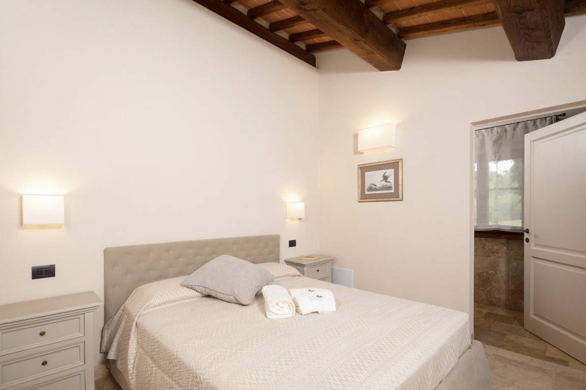 Schlafzimmer mit Bad 2: Doppelbett, WiFi Internet, Klimaanlage, Fliegengitter, Waschbecken, WC, Bidet, Dusche.