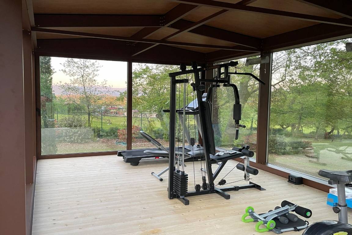 Mit offener Raum, Fitnessraum, Schlafzimmer, Badezimmer.