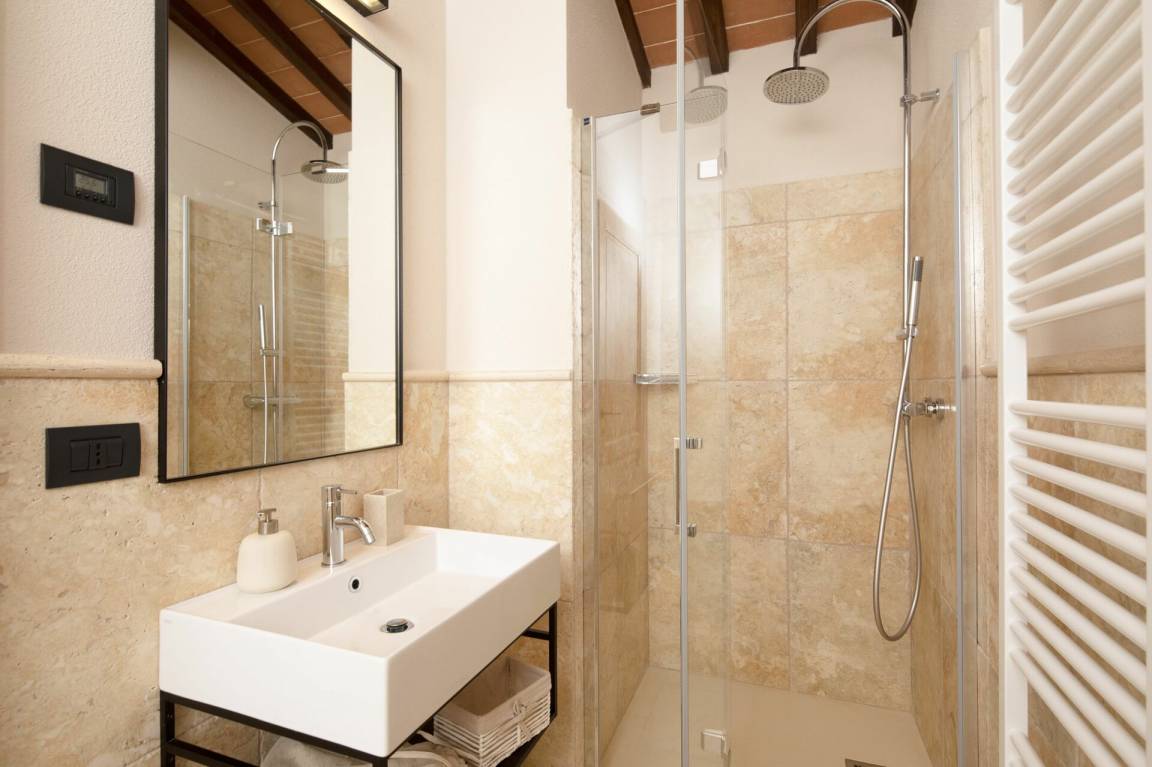 Badezimmer: Waschbecken, WC, Bidet, Dusche, WiFi Internet.