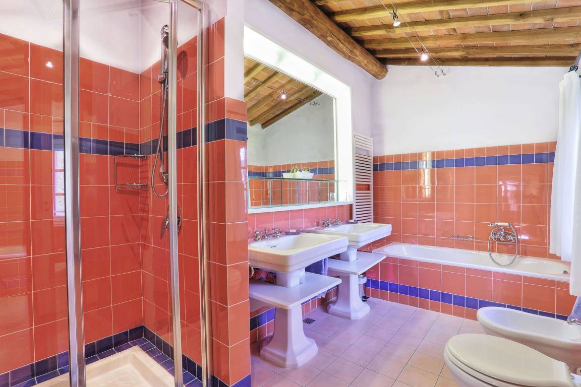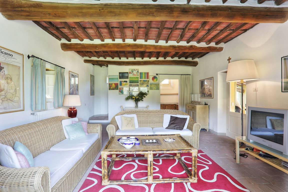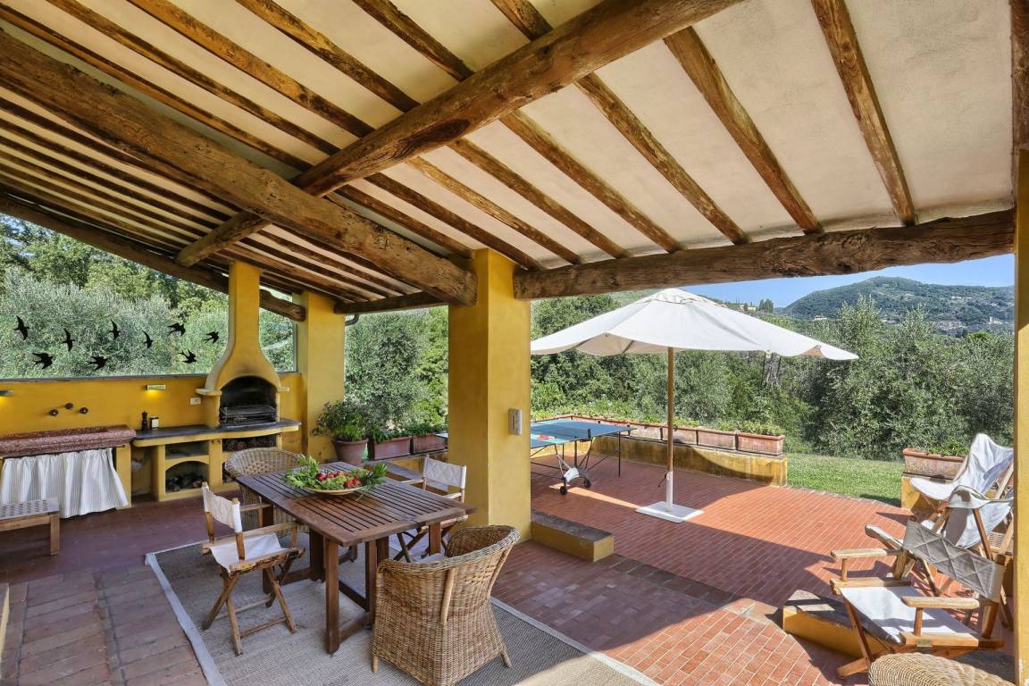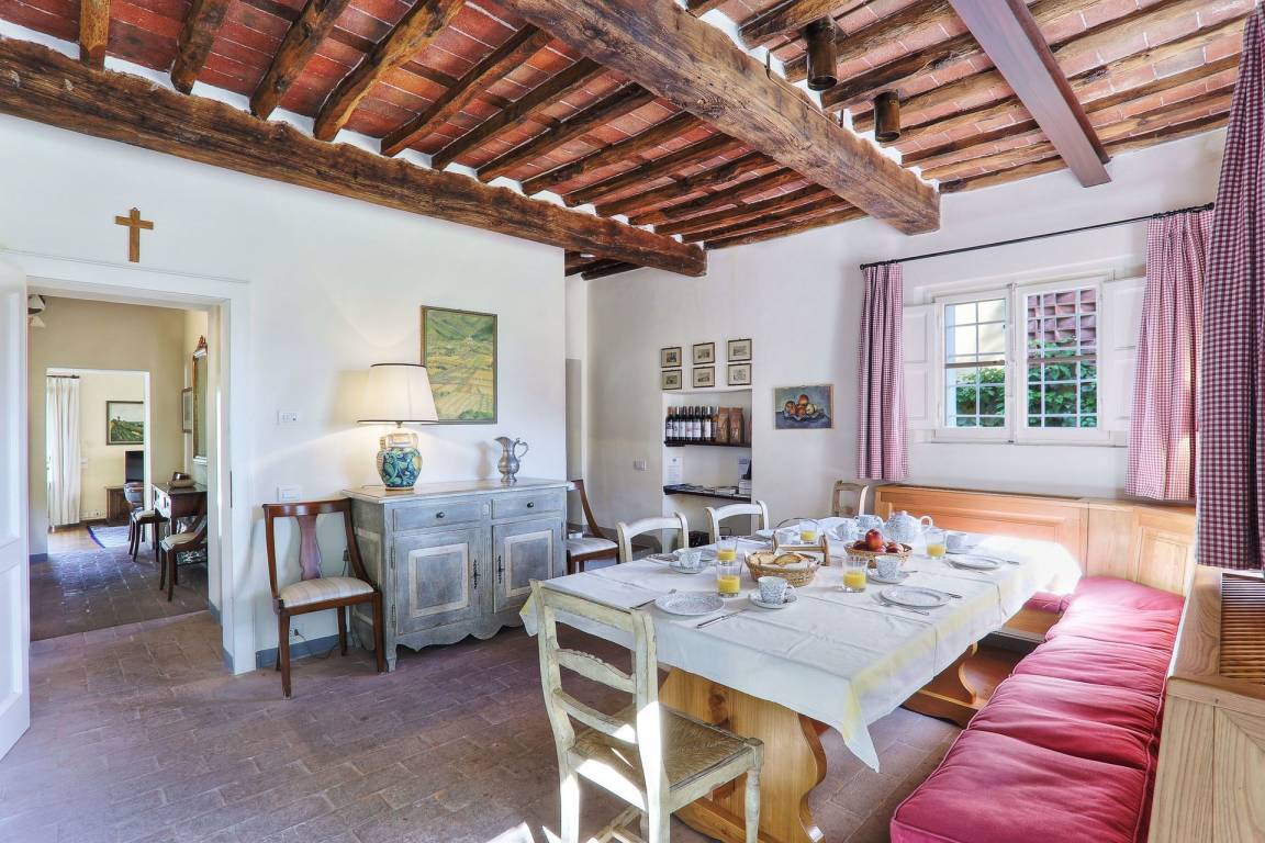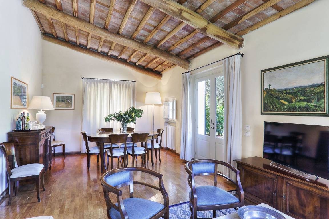 Küche: gut ausgestattete Küche, Esstisch (Personen: 12), Spülmaschine, Kühlschrank, Tiefkühler, Mikrowelle, Herd, Ofen, Italienische Kaffeemaschine, Amerikanische Kaffeemaschine, Kamin, WiFi Internet, Ausgang auf den Garten.