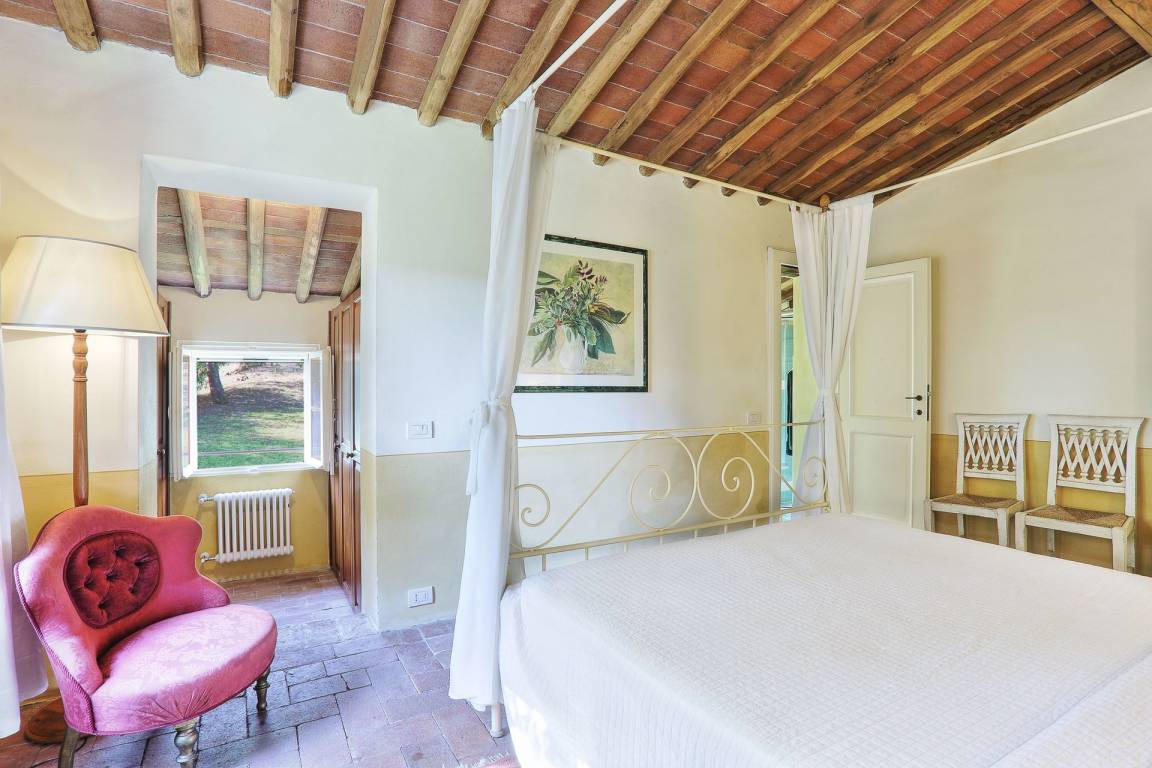 Das Schlafzimmer mit Bad in der Dependance befindet sich im 1. Stock.