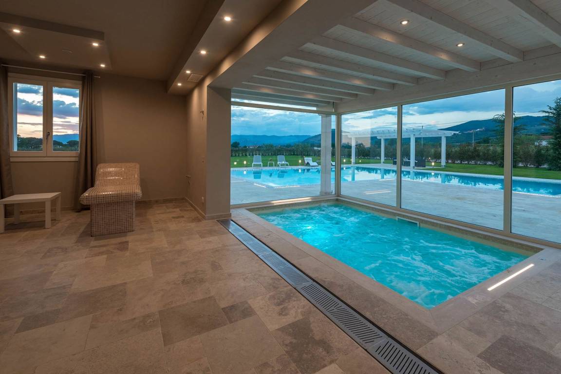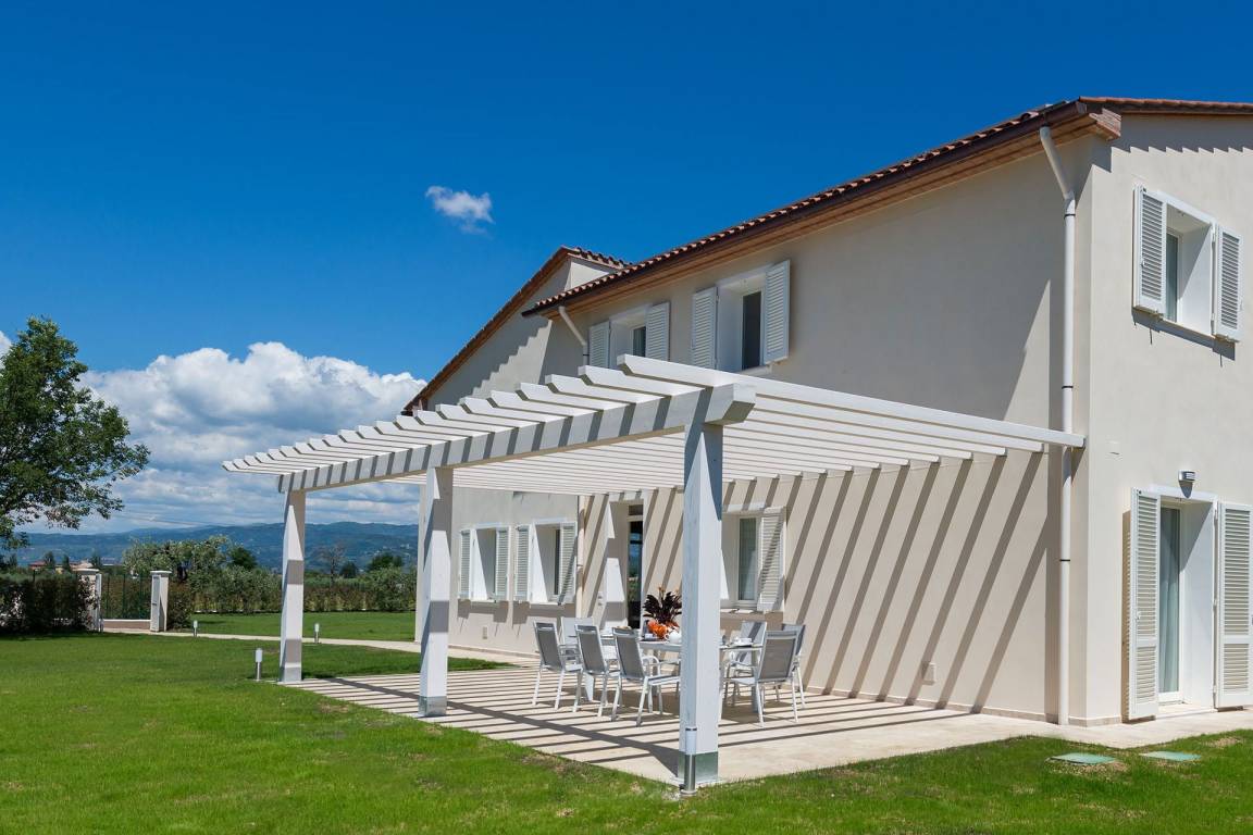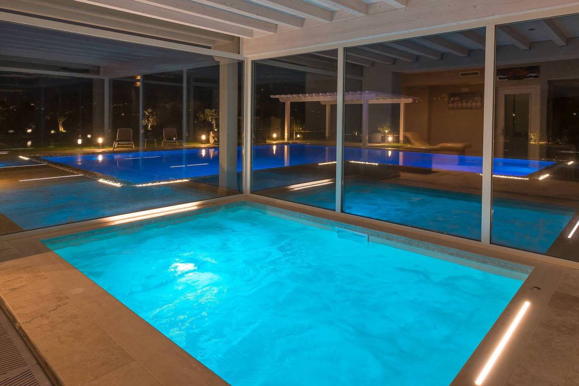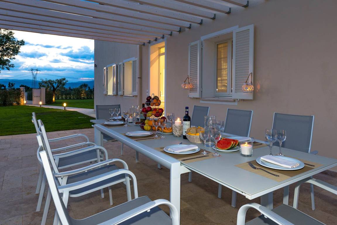 Die Küche verfügt über einen Herd, einen Kühlschrank, einen Eiswürfelbereiter, eine Mikrowelle, einen Toaster, einen Wasserkocher und eine Geschirrspülmaschine. Eine Klimaanlage und Heizung sind im gesamten Haus vorhanden; eine Waschmaschine steht den Gästen zur Verfügung. Jedes Schlafzimmer ist mit Satellitenfernsehen ausgestattet, und ein zusätzlicher Fernseher befindet sich im Fernsehraum. Die überdachte Außenterrasse ist mit Esstisch, Stühlen und einem Grill ausgestattet und bietet Ausblick auf die umgebende Hügellandschaft. Der großzügige Privatgarten verfügt über einen gepflegten Rasen, einen privaten Swimmingpool von 7 x 11 Metern mit zusätzlichem angewinkeltem Bereich von 4 x 5 Metern sowie Sonnenliegen mit Sonnenschirmen. Der angrenzende SPA-Bereich umfasst ein beheiztes Hydromassage-Becken von 3,80 x 2,5 Metern mit einer Tiefe von 1 Meter, eine Sauna von 4 Quadratmetern, ein Türkisches Bad von 4 Quadratmetern und 2 beheizte Ruheliegen; der Bereich ist von großen Glastüren umgeben. Wi-Fi ist im gesamten Haus verfügbar. Haustiere werden auf Anfrage kostenlos akzeptiert.