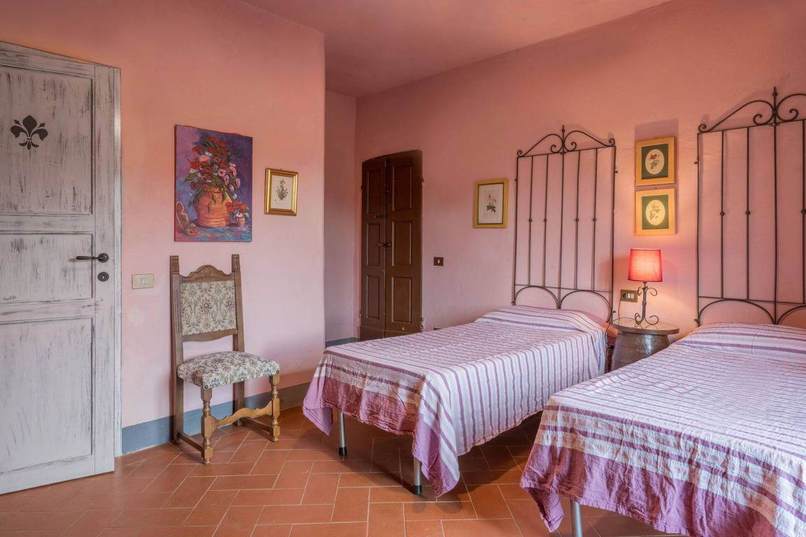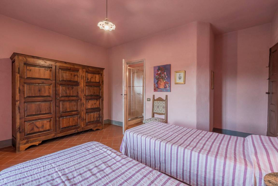 Schlafzimmer mit Bad 3: zwei Einzelbetten, WiFi Internet, Waschbecken, WC, Bidet, Dusche.