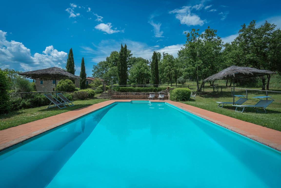 Garten: Schwimmbad (Breite: 5m, Länge: 12m, max. Tiefe: 1.5m, min. Tiefe: 0.8m, umzäunt), Dusche, WiFi Internet, Grill, Kamin, Esstisch, Pavillon, Gartenmöbel, Sonnenliege, eingezäunt, umzäuntes Grundstück, Kinderspielplatz.