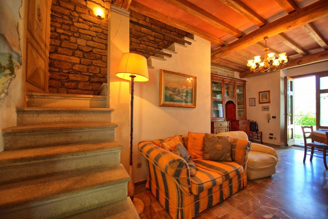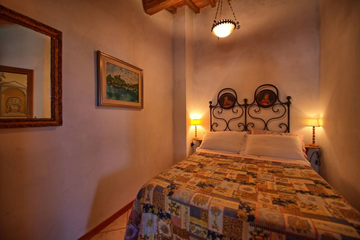 Innentreppe mit Wandmalerei zur 1 Etage: Doppelzimmer, Einzelzimmer, Badzimmer mit Dusche. Die Decken sind mit sichtbaren Balken ausgestattet, und die Möbel sind im traditionellen Stil gehalten. Ausgestattete Terrasse.