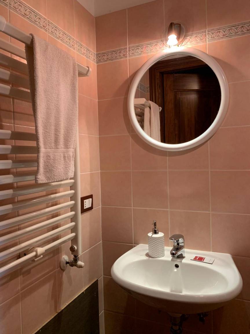 Schlafzimmer mit Bad 5: zwei Einzelbetten, WiFi Internet, Klimaanlage, Fliegengitter, Waschbecken, WC, Bidet, Badewanne.