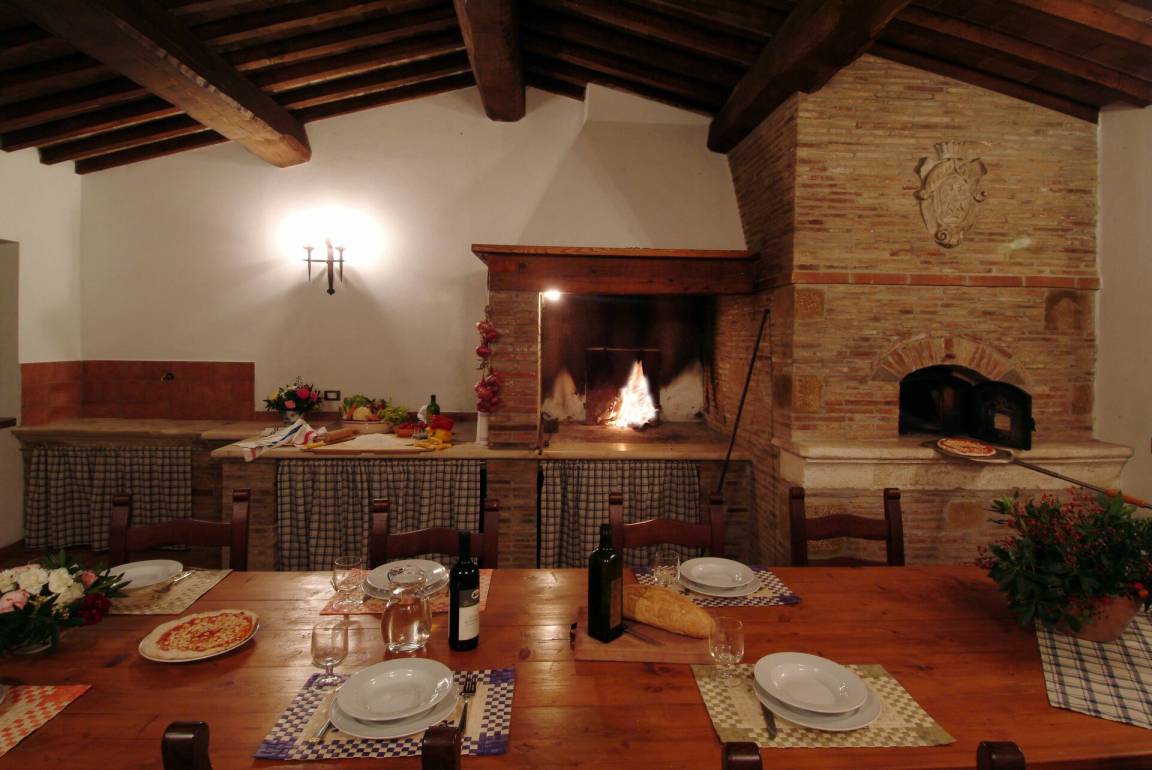 offener Raum: Kamin, Esstisch, WiFi Internet, Ofen, Ausgang auf den Garten.