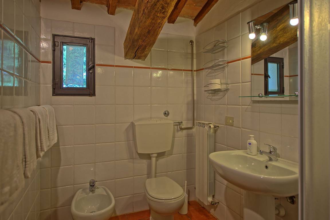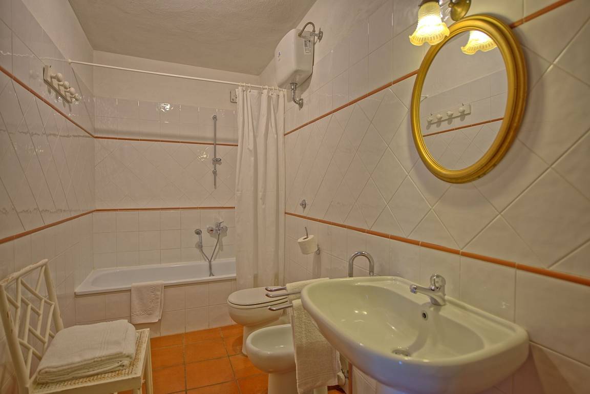 1 Stock: Doppelzimmer mit eigenem Bad mit Badewanne und Duschvorrichtung (ohne Fenster), 2 Zweibettzimmer, Bad mit Dusche (ohne Fenster).