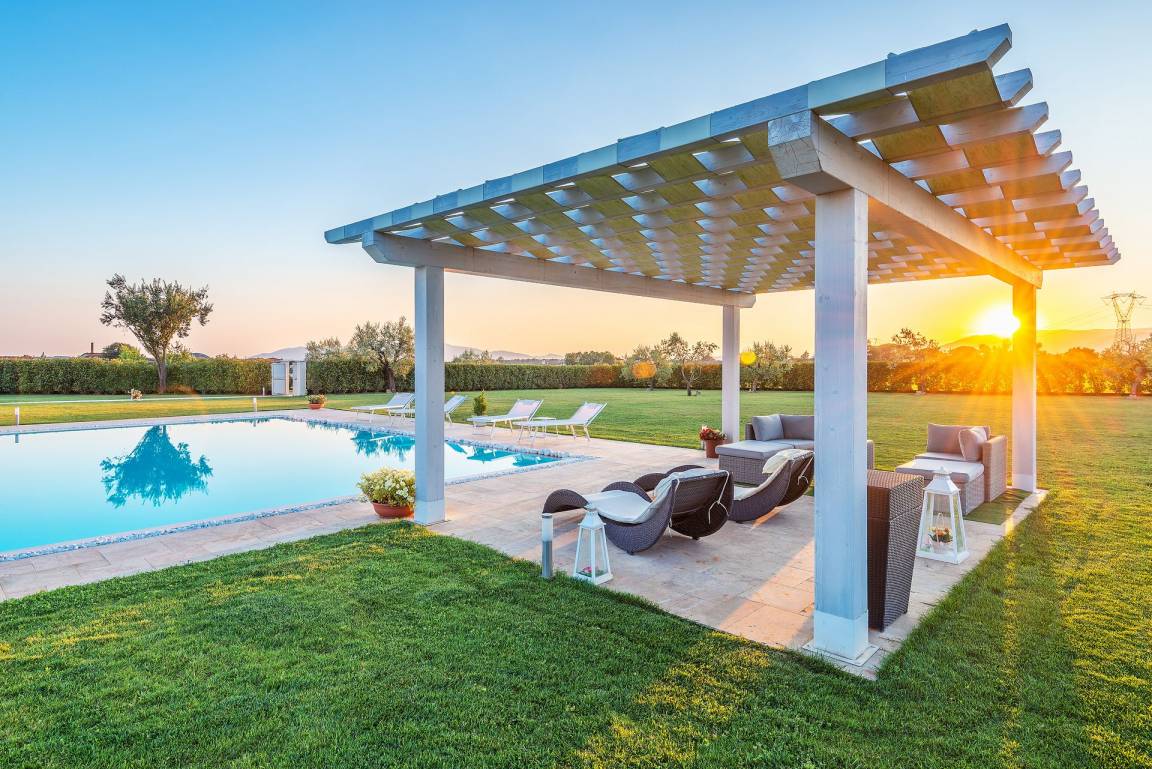 Garten: Schwimmbad (privat, Breite: 7m, Länge: 11m, Außen), zwei Duschen, WiFi Internet, Grill, Pavillon, Gartenmöbel.