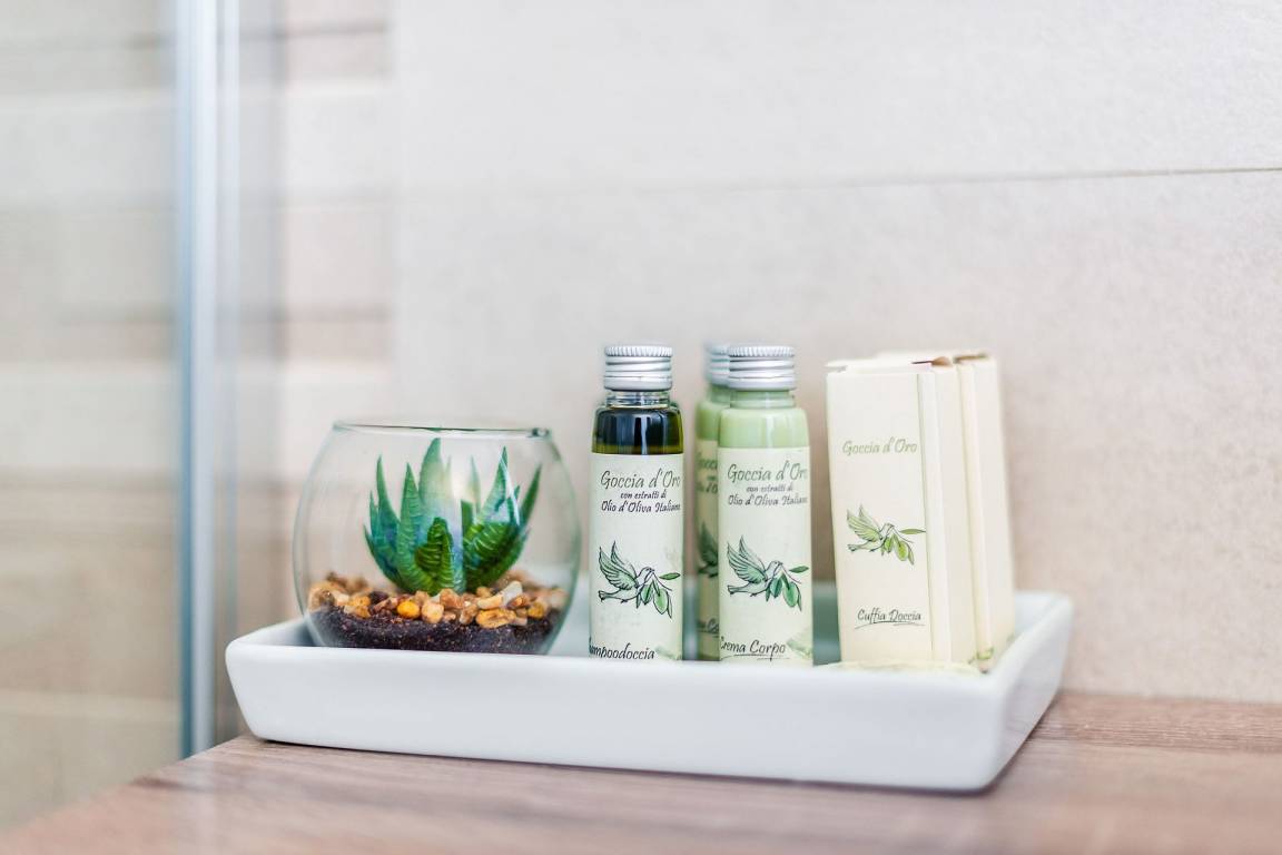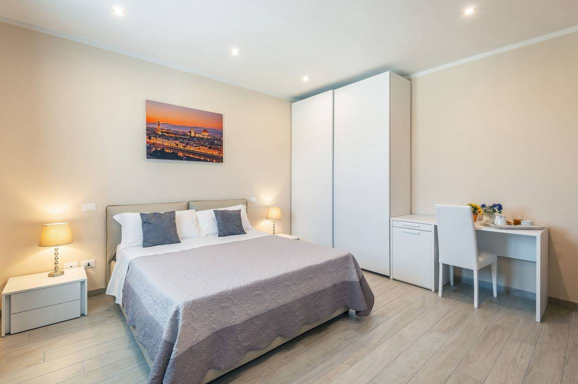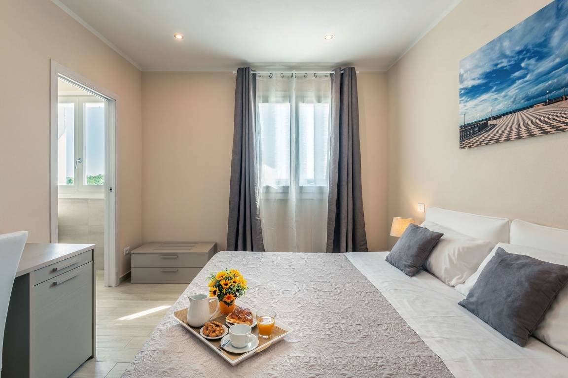 Schlafzimmer mit Bad: Doppelbett, Einzelbett, WiFi Internet, Klimaanlage, Waschbecken, WC, Bidet, Dusche, Fön, Ausgang auf den Garten.