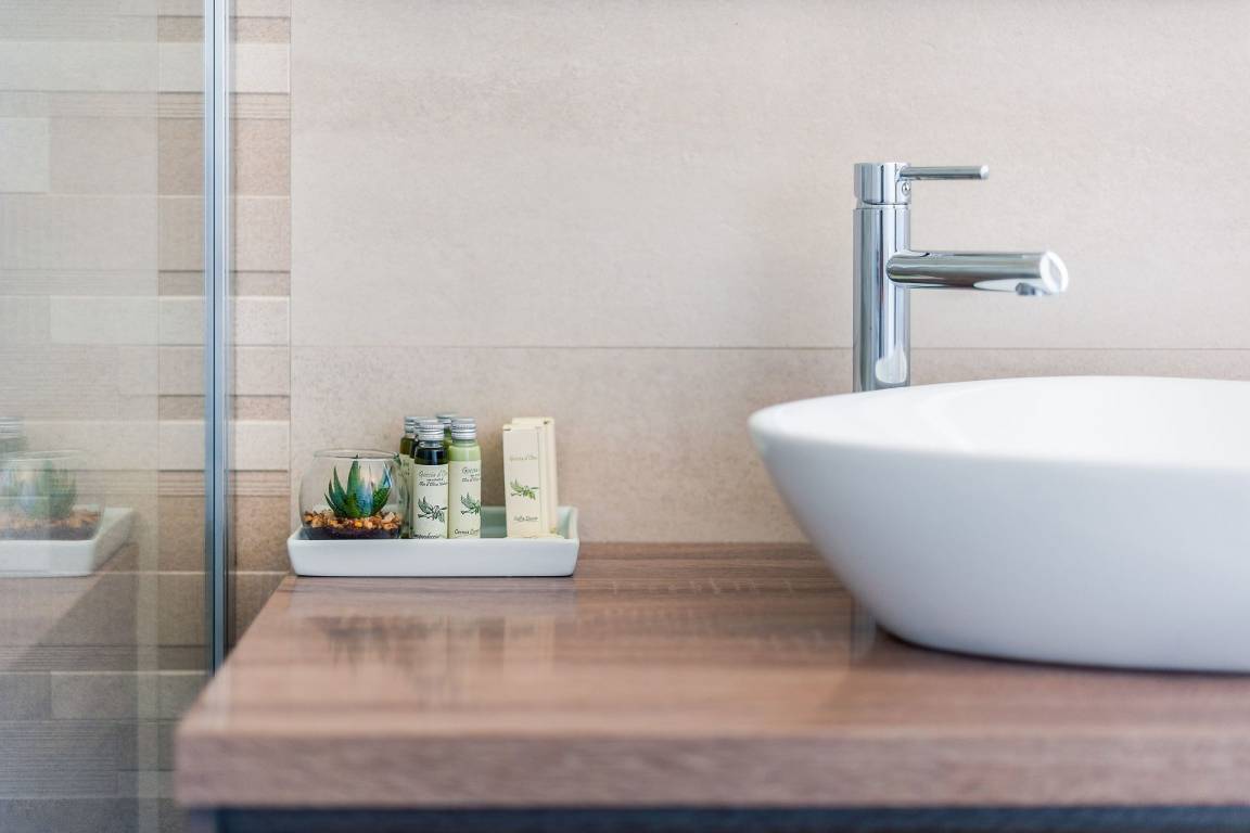 Schlafzimmer mit Bad 4: Doppelbett, WiFi Internet, Klimaanlage, Waschbecken, WC, Bidet, Dusche, Fön.