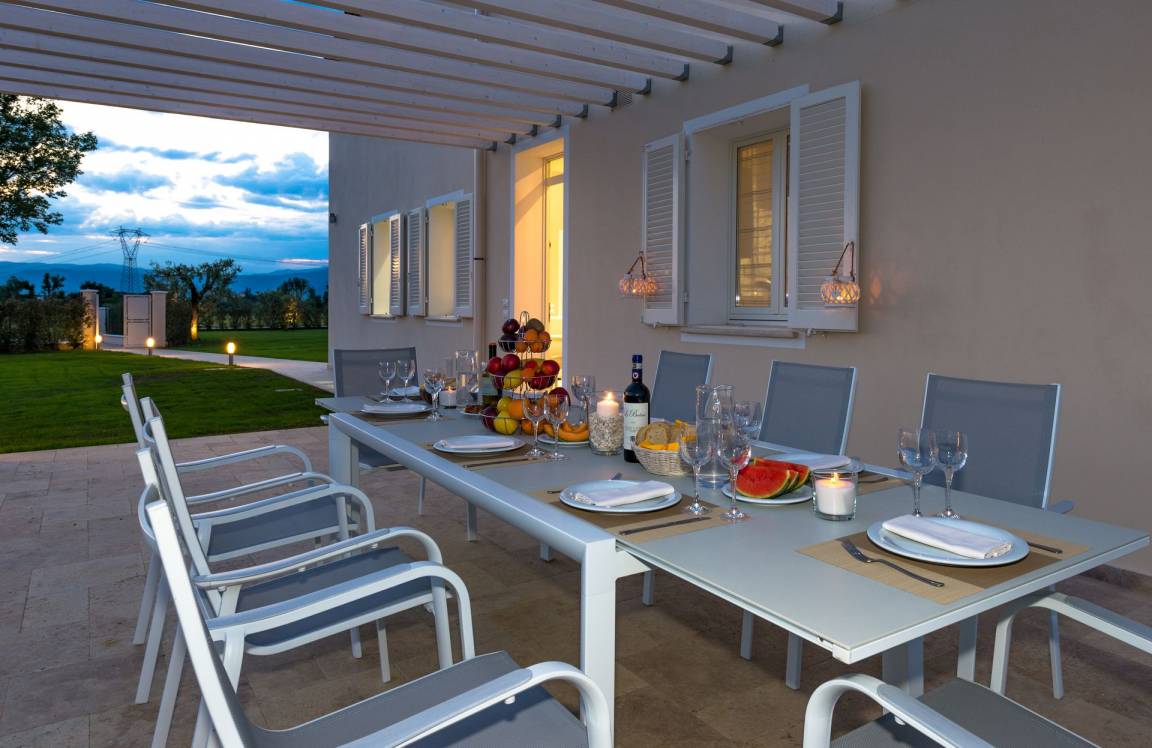 Wohnküche: gut ausgestattete Küche, zwei Esstische (Personen: 16), Spülmaschine, Kühlschrank, Tiefkühler, Mikrowelle, Herd, Ofen, Toaster, Bügeleisen, Italienische Kaffeemaschine, Amerikanische Kaffeemaschine, Waschmaschine, Trockner, Sofa (Personen: 4), WiFi Internet, Klimaanlage, TV, Ausgang auf den Garten.