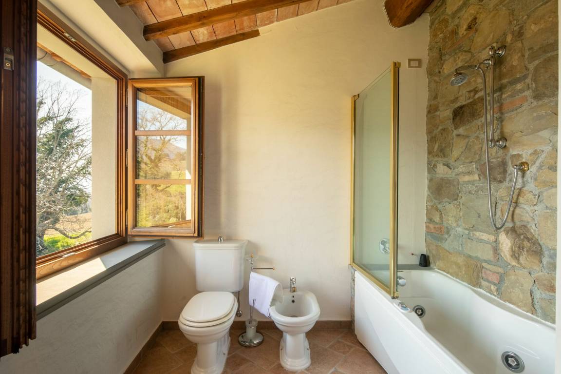 Schlafzimmer mit Bad 5: Doppelbett, WiFi Internet, Waschbecken, WC, Bidet, Dusche.