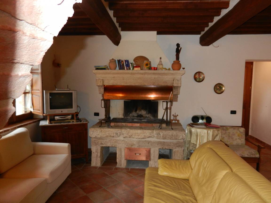 Wohnzimmer: zwei Sofas, Kamin, Esstisch (Personen: 10), WiFi Internet, Satelliten-TV, Stereoanlage.