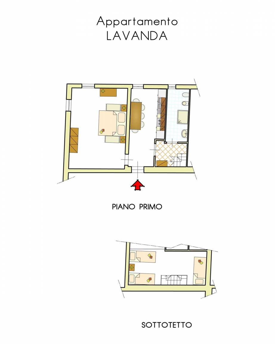 Appartamento Lavanda (68 m²) ist eine eins-Zimmer Wohneinheit, mit eins Badezimmer. Hier können bis zu fünf Personen unterkommen.