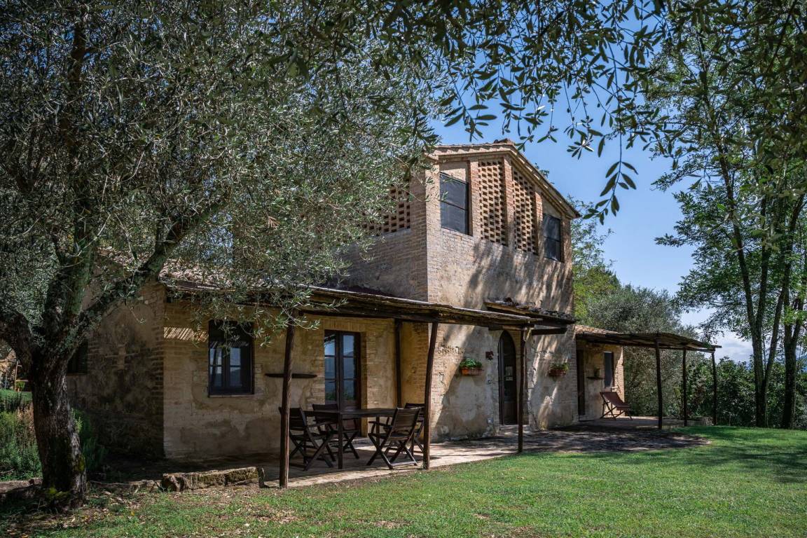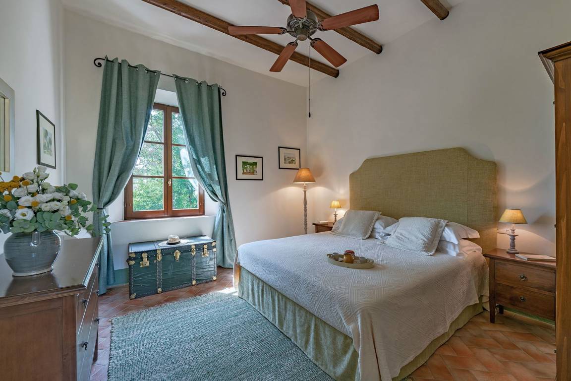 Die Dependance hat zwei Stockwerke, die über eine steile Wendeltreppe miteinander verbunden sind. Im ersten Stock gibt es nur ein Schlafzimmer und ein Badezimmer.Erdgeschoss