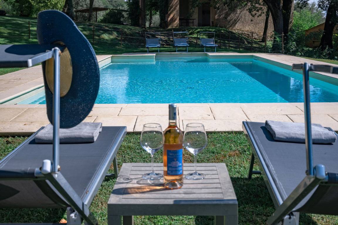 Garten: Schwimmbad (privat, Breite: 11m, Länge: 5m, Außen), WiFi Internet, Pavillon, Gartenmöbel, zehn Sonnenliegen.