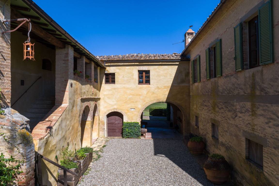Das Hauptgebäude besteht eigentlich aus zwei Gebäuden, die beide ihren eigenen, unabhängigen Eingang haben, aber durch einen internen Korridor im ersten Stock miteinander verbunden sind (siehe Foto). Allerdings sind die beiden Stockwerke, die den Hauptbau ausmachen, NICHT intern miteinander verbunden und sind ausschließlich von außen zugänglich.