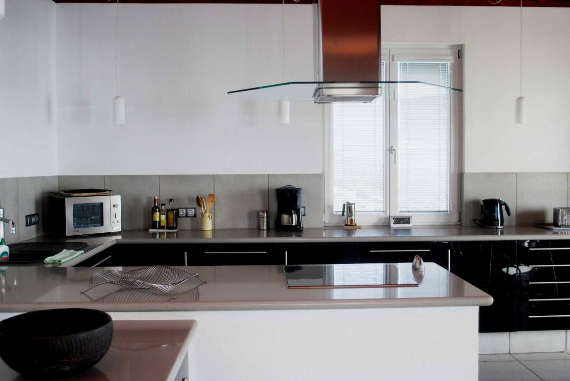Fußbodenheizung durch Thermosolar und luft-Wärmepumpe. Wohnbereich mit integrierter Küchenzeile, Internetz-Zugang mit WLAN, Flachbild TV, Bücher- und CD-, DVD Sasmmlung. Ein Schlafzimmer mit 200 x 200 cm Doppelbett mit zwei Qualitätsmatratzen, zwei verstellbare Lattenroste. Ein Einzelbett (Klappbett im Flur), 2 Einzelbetten im Vorraum der Sauna. Ein großes Bad mit Doppelwaschbecken, Regendusche, Bidet und WC angeschlossen an das Schlafzimmer und 2 kleine Bäder mit Waschbecken, Dusche, WC. 2 große Gartenterrassen mit Gartenmöbeln, Sonnenliegen und Schirmen, subtropischer Garten; Wanderungen vom Haus aus in die Berge möglich.
