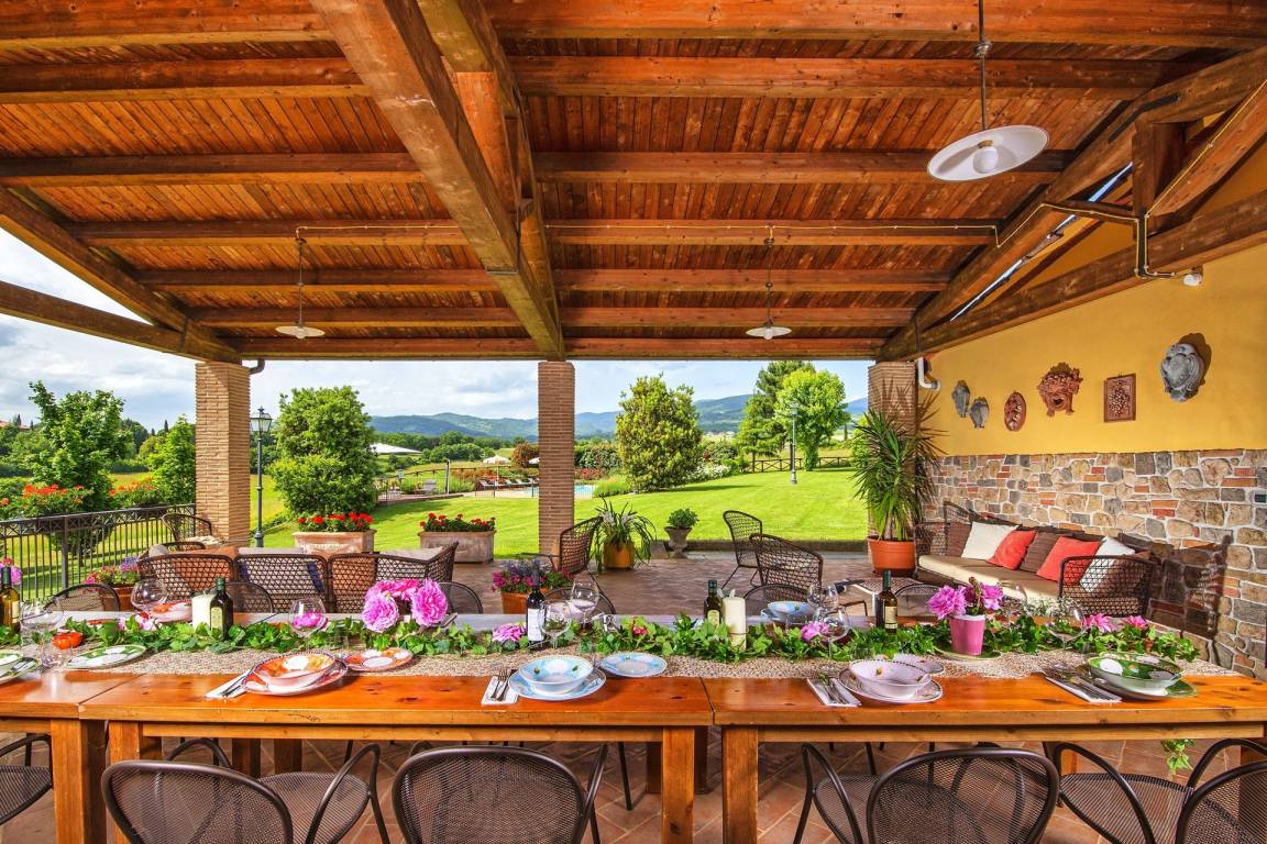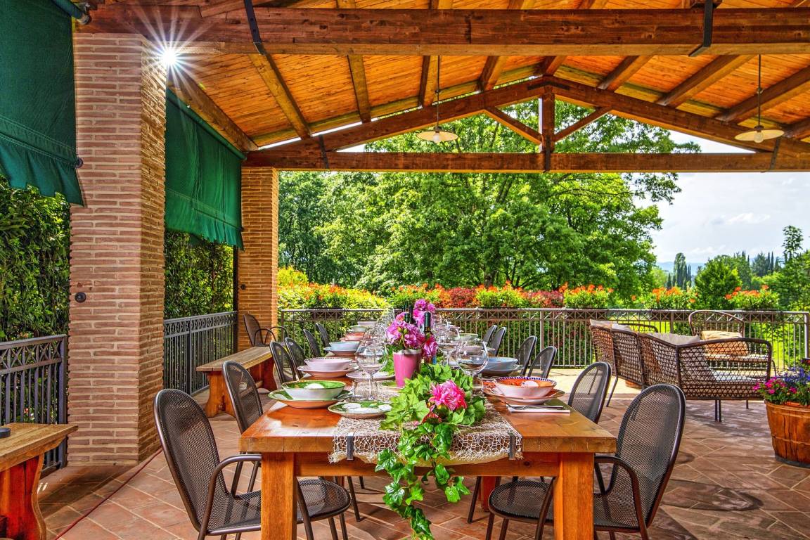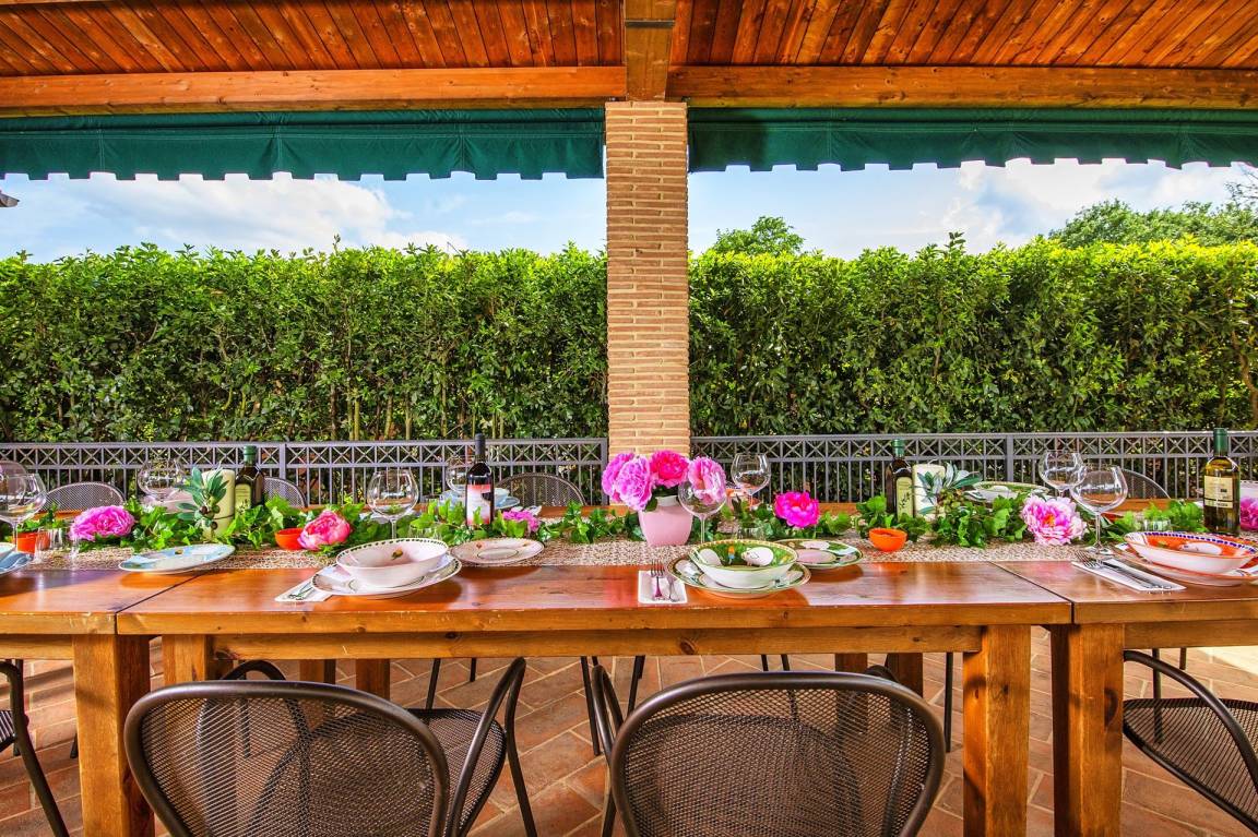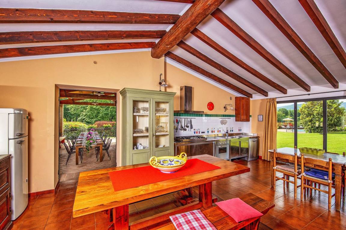 „Perfectie locatie in alle opzichten. Uitgestrekt landgoed tot onze beschikking, waar iedereen kon doen wat hij wilde. Eigen zwembad, eigen bos om in te wandelen, eigen tennisbaan. Grote houtoven om zelf pizza's te maken. De tafels zijn voorzien van marmer platen zodat je zelf je pizza's kunt uitrollen. Uitermate ruim opgezette ruimte waar grote groep mensen samen vakantie kunnen houden. Winkels niet verder van het complex. Zeer attente host die zelfs een oplossing in het dorp regelde toen er een mankement aan een van de auto's was. Het was gewoon perfect en we hebben een heerlijke zorgeloze vakantie met de gehele familie gehad. A perfect location in every way. A vast estate at our disposal, where everyone could do what they wanted. Our own swimming pool, our own forest for walking, our own tennis court. A large wood-fired oven for making your own pizzas. The tables are topped with marble slabs so you can roll out your own pizzas. An extremely spacious area where large groups can holiday together. Shops are just a short distance from the complex. A very attentive host who even arranged a solution in the village when one of our cars broke down. It was simply perfect, and we had a wonderful, carefree holiday with the whole family.“