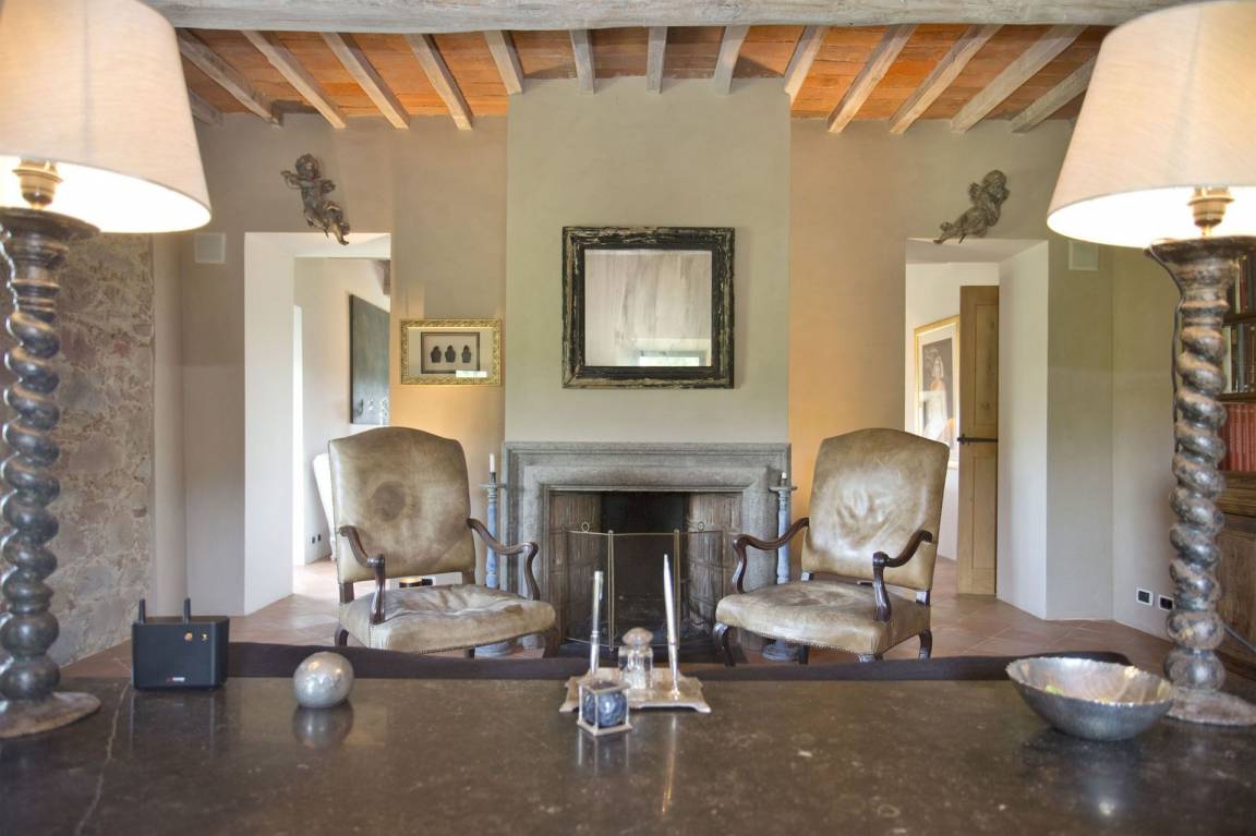 Wohnzimmer 1: zwei Sofas (Personen: 6), Sessel, Kamin.