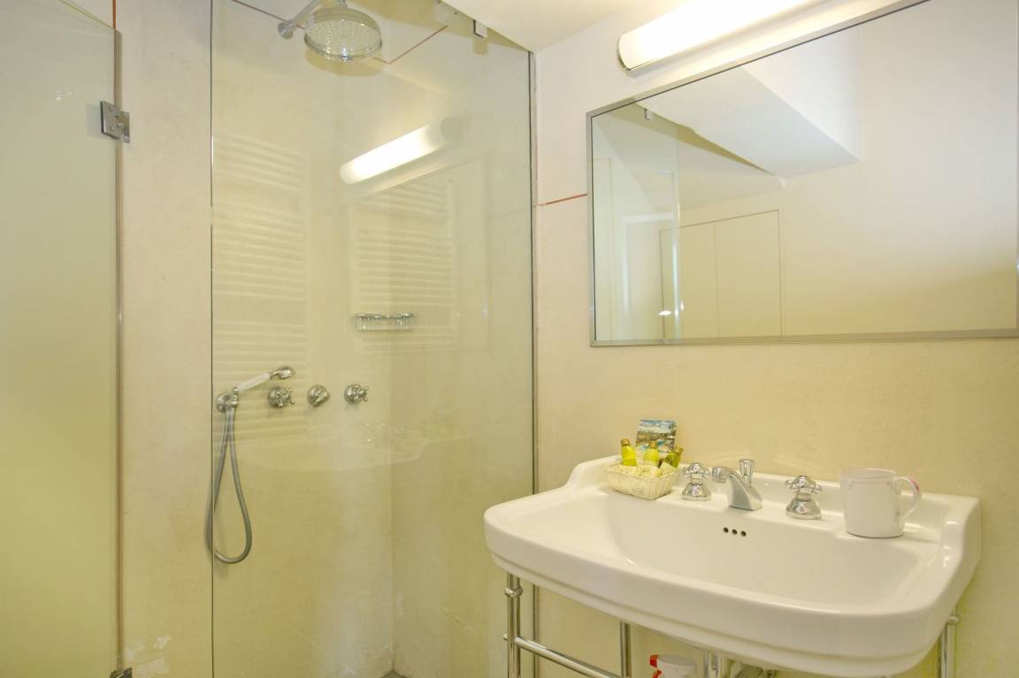Schlafzimmer mit Bad 3: Doppelbett, WiFi Internet, Klimaanlage, Waschbecken, Dusche, Fön.