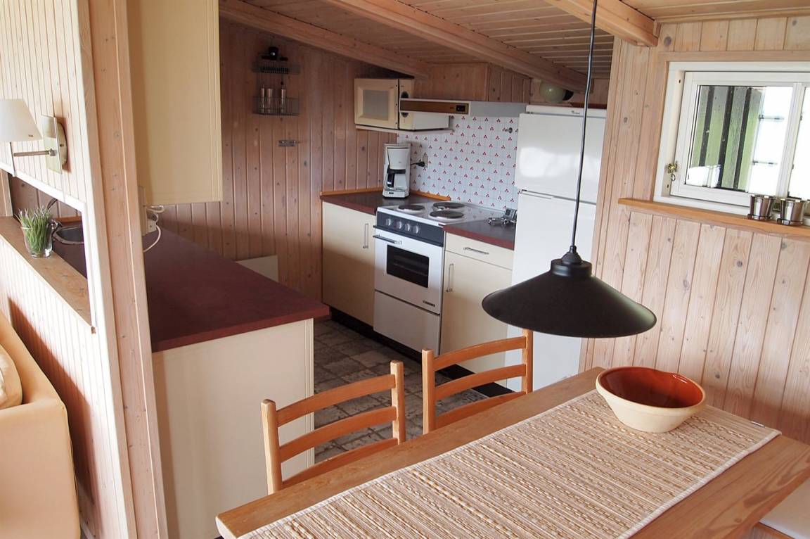DraußenDie Ferienunterkunft liegt auf einem 200 m² großen Naturgrundstück. Die Entfernung zum Fjord beträgt 50 m. Die nächste Einkaufsmöglichkeit liegt 2000 m entfernt. Es steht ein 20 m² Terrassenareal zur Verfügung.